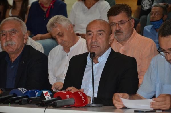 İzmir Baro Başkanı Özkan Yücel, DİSK Ege Bölge Temsilcisi Memiş Sarı, oda ve sivil toplum kuruluşlarının temsilcileri de ortak mücadeleye devam edileceğinin altını çizdi. (DHA)