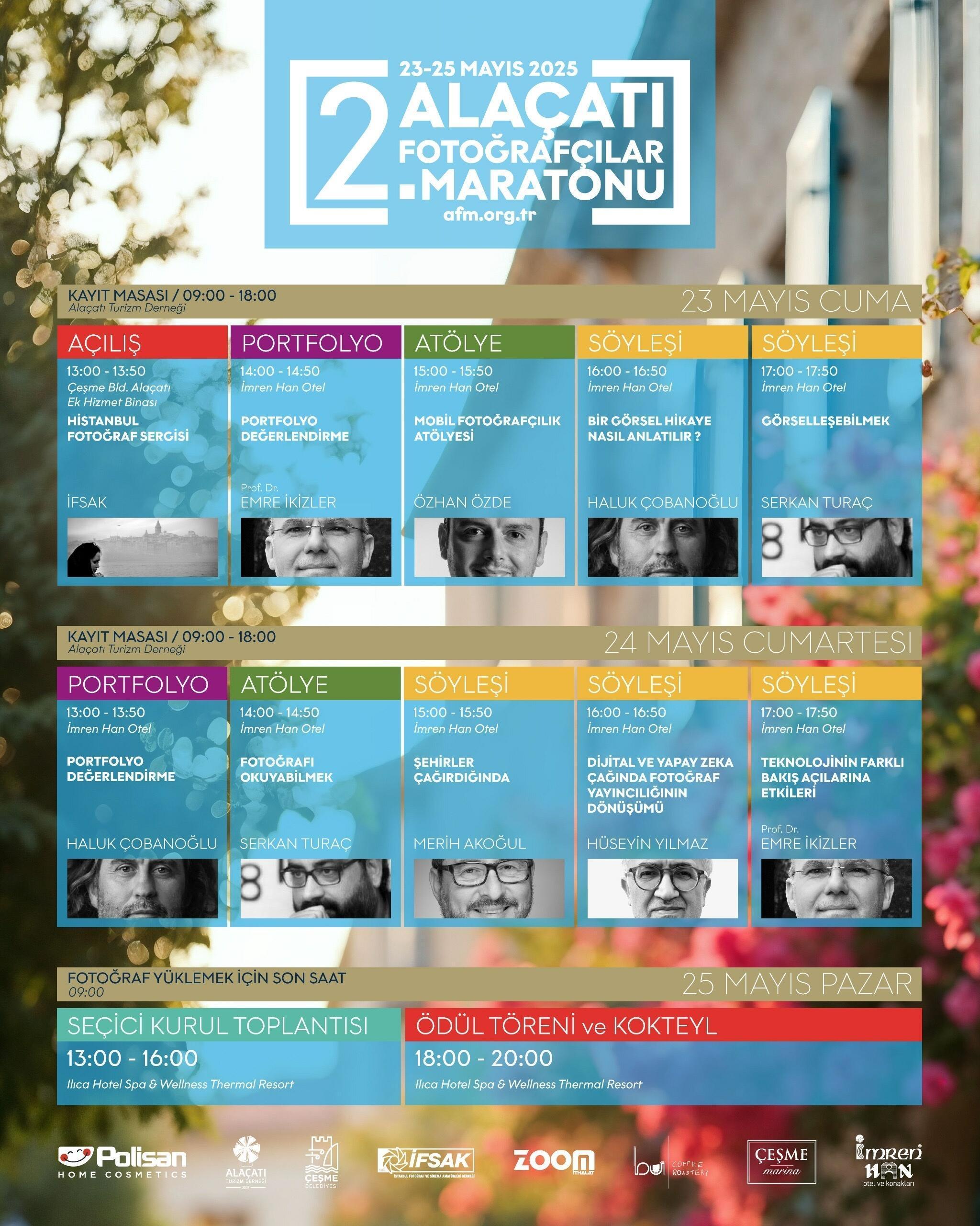 Maratonun, yalnızca bir yarışma değil; aynı zamanda Alaçatı'nın kültürel mirasını belgeleyen ve görsel hafızasını oluşturan güçlü bir sanat buluşması niteliği taşıyacağı da belirtildi. Program kapsamında, Serkan Turaç küratörlüğünde açılan 'Histanbul' sergisi, Haluk Çobanoğlu'nun 'Bir Görsel Hikaye Nasıl Anlatılır?' söyleşisi, Prof. Dr. Emre İkizler ile 'Teknolojinin Farklı Bakış Açılarına Etkisi' başlıklı oturum ve Merih Akoğul, Hüseyin Yılmaz gibi alanında uzman isimlerin katıldığı etkinliklerle, Alaçatı'da fotoğraf ve düşünce ekseninde bir paylaşım ortamı sunacağı bildirildi. (DHA)