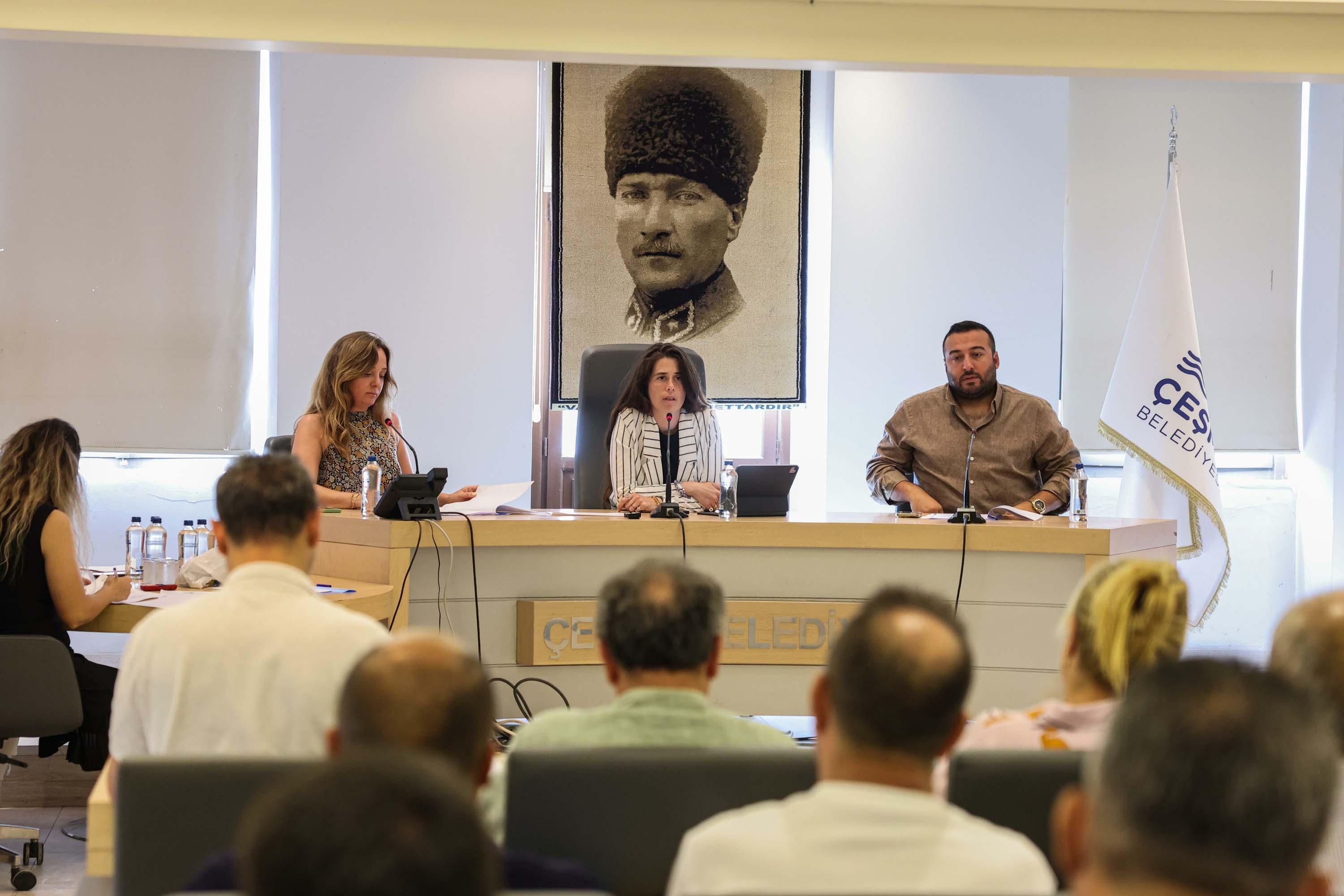 Çeşme Belediyesi temmuz ayı olağan meclis toplantısı, Çeşme Belediye Başkanı Lal Denizli'nin başkanlığında gerçekleştirildi. Toplantıda, Çeşme Belediyesi ile Türk Deniz Araştırmaları Vakfı (TÜDAV) arasında protokol imzalanması karara bağlandı. Protokol kapsamında, Çeşme Yarımadası Deniz Çevresi Sorunları ve Çözümleri, Deniz Aksiyon Planları ve plan dahilinde yapılacak etkinlikler kapsamında proje gerçekleştirilecek. Çeşme'nin tarihi ve kültürel dokusuna uygun bir kent estetiği ile İnkılap Caddesi'ni cazibe merkezi haline getirecek ve mevcut potansiyelleri artırarak bölgenin turizme kazandırılması, ticari faaliyetlerin geliştirilmesi amacıyla planlanan cephe iyileştirme ve sokak sağlıklaştırma çalışmaları kapsamında bakım onarım ve tamir işlerinin gerçekleştirilmesi konusu karara bağlandı.