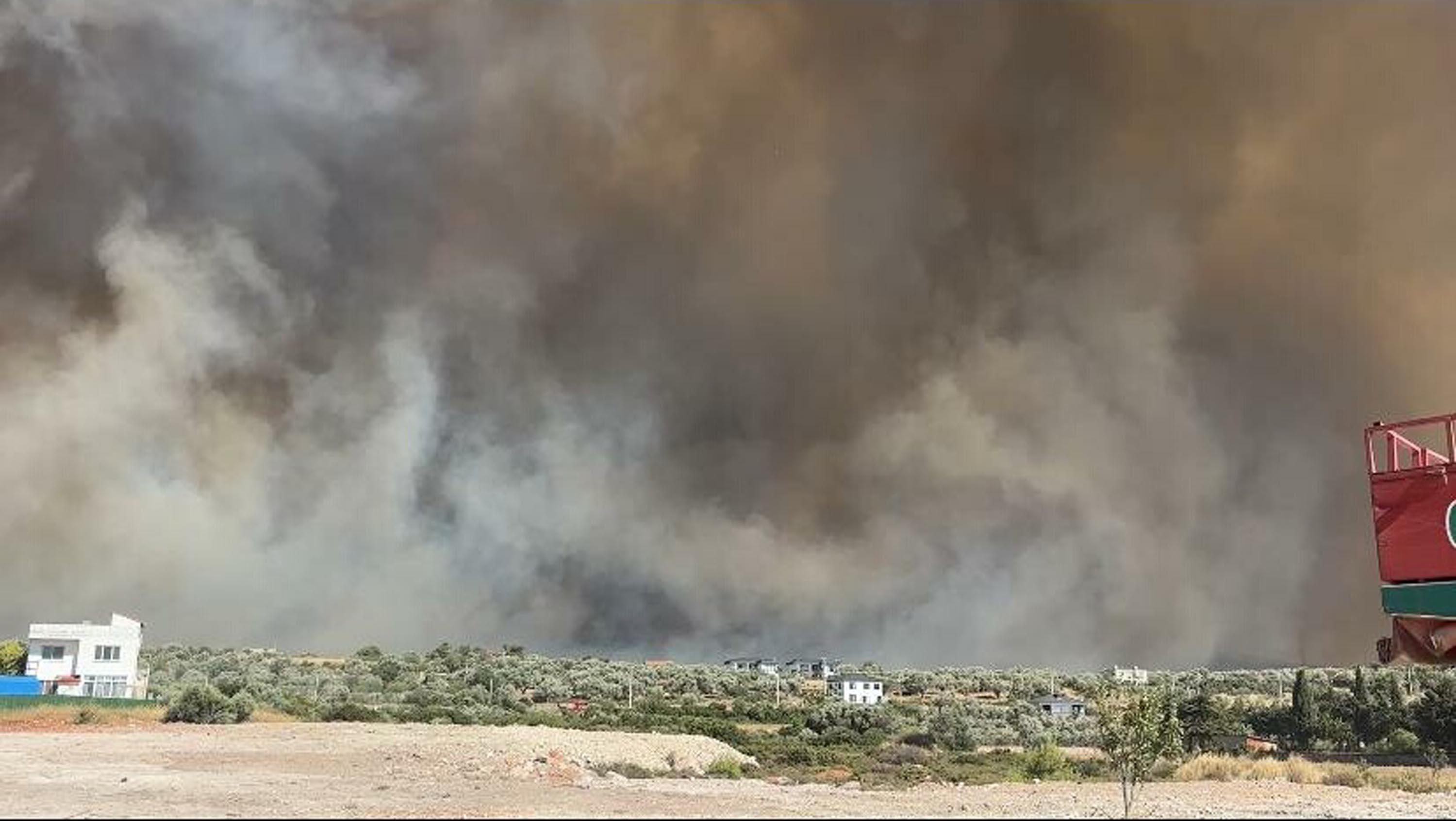 Çeşme ilçesinde tarım arazisinde başlayıp, ormana sıçrayan yangının olumsuz etkilediği Germiyan Mahallesi, ekipler tarafından tedbir amacıyla tahliye ediliyor.