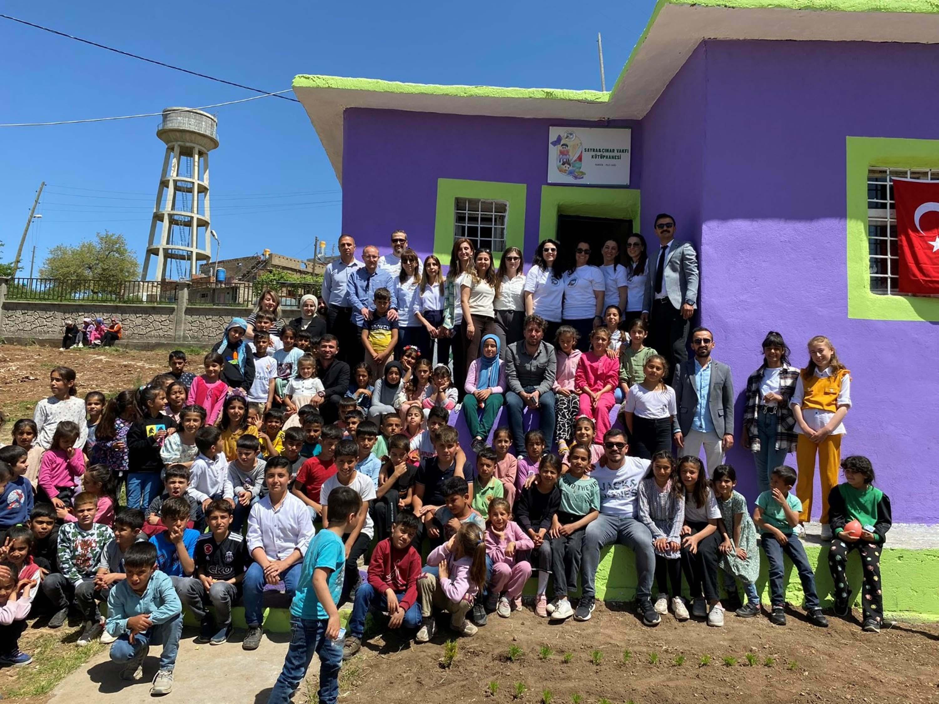 Metruk bir binaya tadilat yaparak yepyeni bir kütüphane kurduklarını anlatan Batmaz, "Bize ulaşıp 'Hiç kitabımız yok, bize kitap gönderin' dediler. Biz de 'Sadece kitap göndermeyelim, kütüphane yapalım' diyerek yola çıktık. Okulda kütüphane yapılacak bir alan dahi yoktu. Okulun bahçesinde metruk bir bina vardı. Tamamen bakımsız ve oldukça kötü bir durumdaydı. Binanın içi ve dışına tadilat yaparak yaş grubuna göre 2 ayrı kütüphane oluşturduk. 8 köye bir kütüphane yapmış olduk. Açılışı 23 Nisan 2024'te gerçekleştirildi. 2023 yılında açmayı planlamıştık, 6 Şubat depremi nedeniyle bir yıl gecikmeli olarak hayata geçirildi" dedi. Mardin'de kütüphane kavramını bilmeyen öğrencilerin bulunduğunu dile getiren Batmaz, köy okullarında okuyan birçok çocuğun çok fazla kitap okunmayan bir ortamda yetiştiğini söyledi. Öğrencilerin birçoğunun Sayra ve Çınar'ı tanımadığını kaydeden Batmaz, şöyle devam etti: