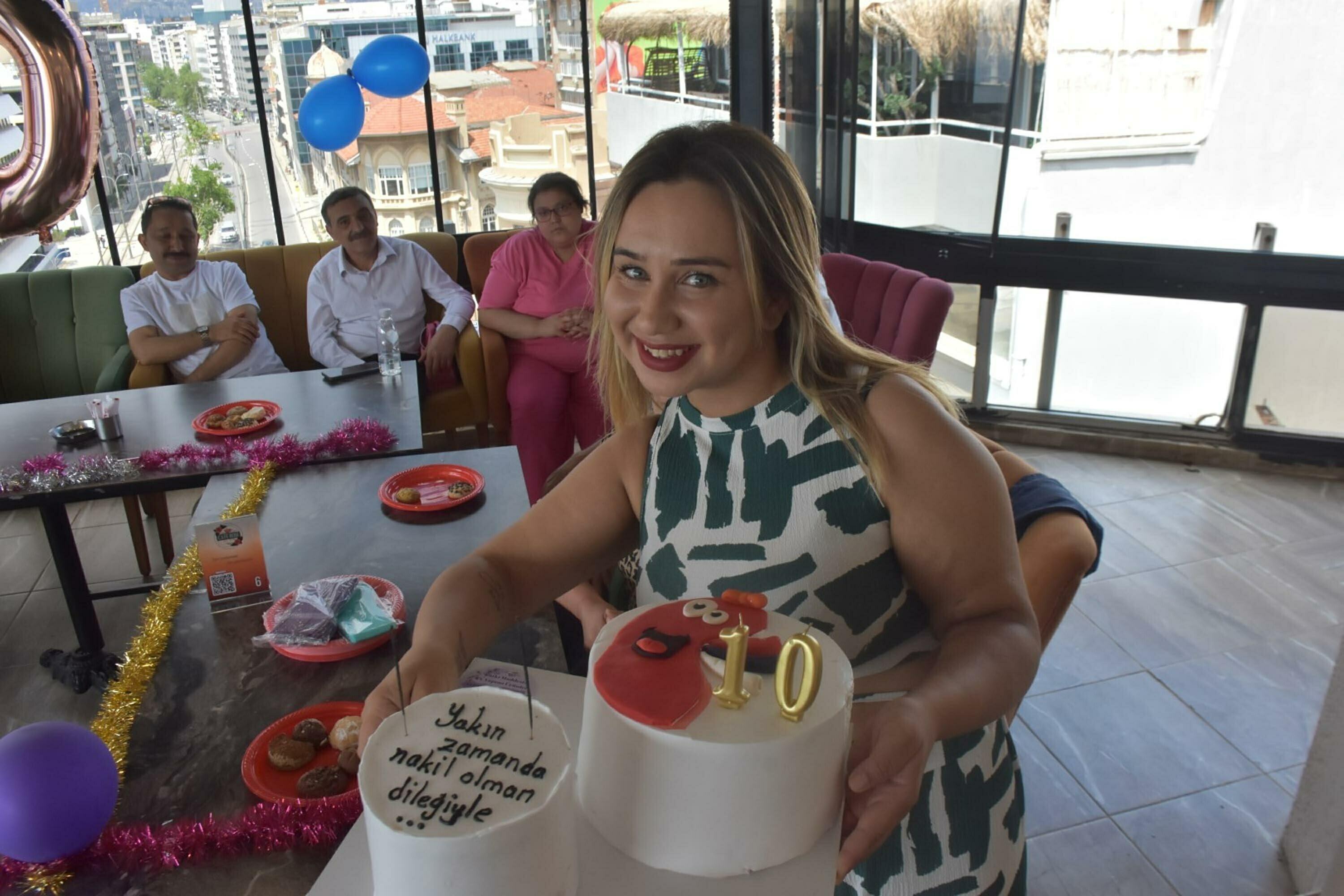 Nevra UÇKAÇ/İZMİR, (DHA)-İZMİR'de yaşayan ve böbrek nakli bekleyen Dilek Gençyılmaz (27), diyalize girmesinin 10'uncu yılı nedeniyle böbrek temalı pasta eşliğinde bir kutlama düzenledi. Nakil olmayı çok istediğini belirten Gençyılmaz "Diyalizimin 15'inci yılı olmasını istemem, olursa da başımın üstünde yeri var. Ama en kısa sürede ben de nakilimin yıl dönümünü kutlamak istiyorum" dedi.