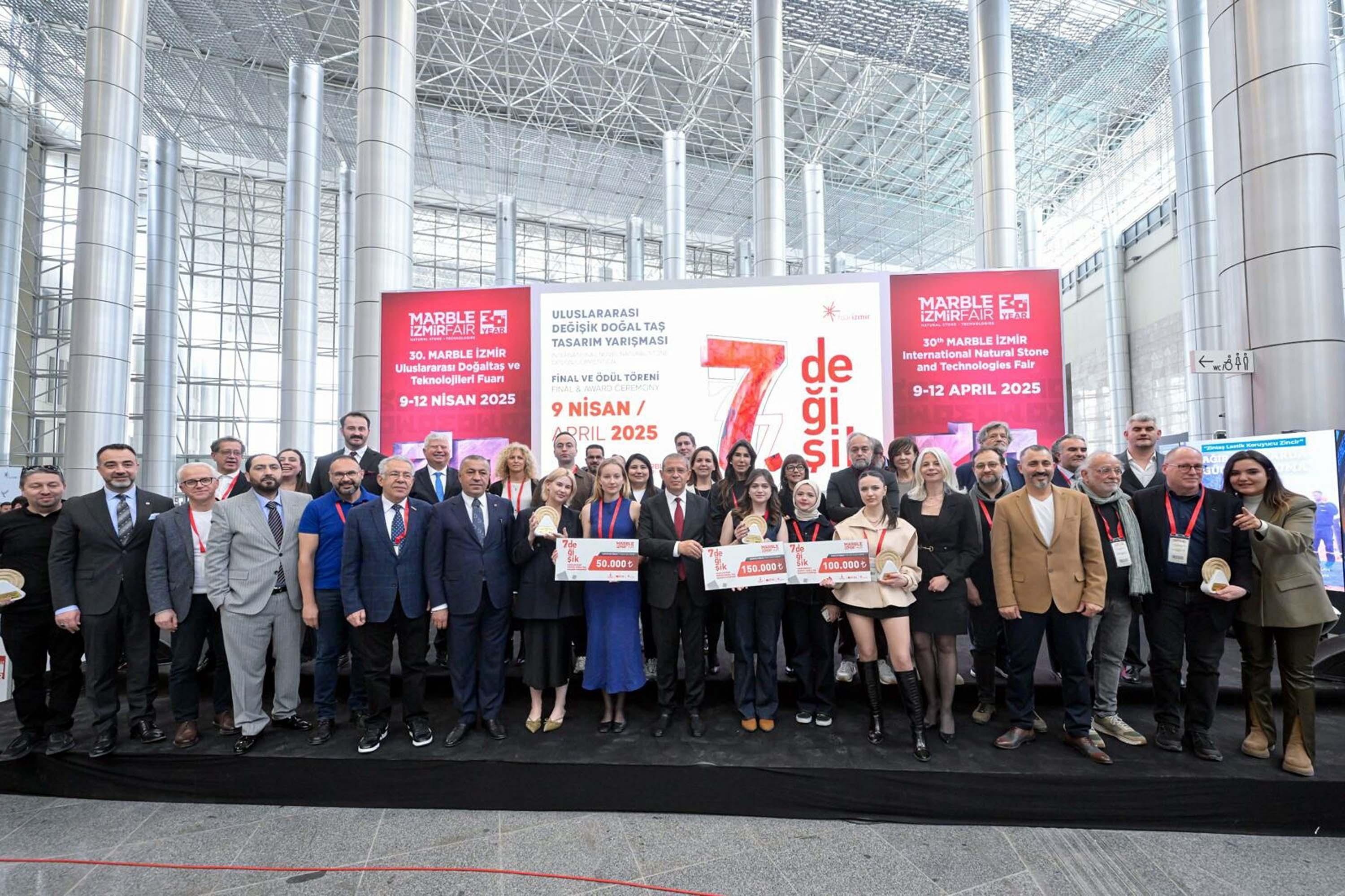 Marble İzmir - Uluslararası Doğaltaş ve Teknolojileri Fuarı 30. kez kapılarını açtı. 9 - 12 Nisan 2025 tarihleri arasında Fuar İzmir'de düzenlenen Marble İzmir Uluslararası Doğaltaş ve Teknolojileri Fuarı kapsamında yapılan 7. Uluslararası Değişik Doğaltaş Tasarım Yarışması da ödül töreni ile sona erdi. Katma değeri yüksek ürünlerle Türk doğal taşının piyasa değerini artırmayı hedefleyen ve bu yıl 'mobilya' temasıyla düzenlenen yarışmada, genç yetenekler doğal taşlardan üretilen eşyalar tasarladı. Akademisyenlerden tasarımcılara ve sektör profesyonellerine kadar birçok önemli ismin yer aldığı jüri tarafından tasarımcı adaylarının doğal taş kullanarak oluşturdukları 892 proje arasından 25 proje finale kalarak üretildi. Fuarın ilk gününde kazananlara ödülleri verildi. Birbirinden farklı tasarımla hayata geçirilen eserler fuarda sergilendi.