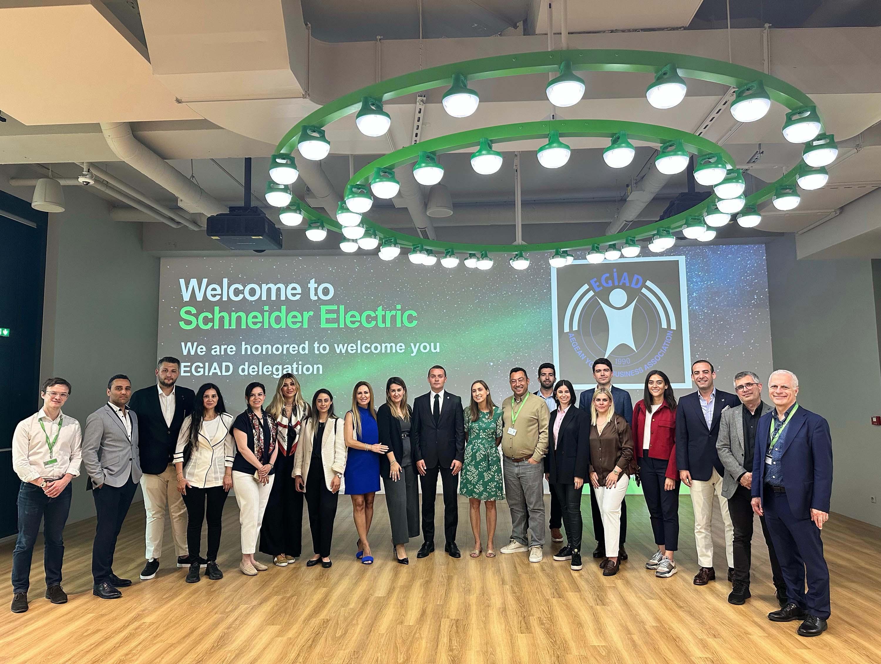 EGİAD heyeti, Schneider Electric'in genel merkezi 'The Hive'ı ziyaret etti. EGİAD heyetini; Schneider Electric Avrupa Strateji Direktörü Sevim Muradaermiş, Endüstri Program Müdürü Moiz Meseri, Endüstri Ticaret Müdürü Yves Daumas ve İnovasyon Merkezi Direktörü My-Linh Franzi karşıladı. EGİAD heyeti, yapay zeka destekli bina otomasyon sistemlerinin karbon emisyonlarını azaltmadaki rolüne dair kapsamlı bilgi edindi. Özhelvacı, EGİAD'ın yeşil büyüme ve sürdürülebilirliği temel önceliklerinden biri olarak benimsediğini belirtti.(DHA)