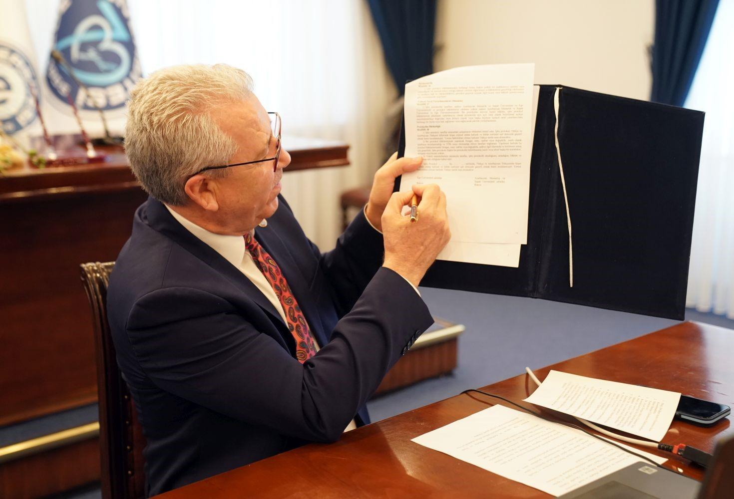 İZMİR, (DHA)-EGE Üniversitesi (EÜ) ile Azerbaycan Mimarlık ve İnşaat Üniversitesi arasında nükleer bilimlerde radyasyon ve güvenlik alanında 'Uluslararası Tezli Yüksek Lisans Çift Diploma Eğitim ve Öğretim Programı' açılmasına ilişkin protokol imzalandı.