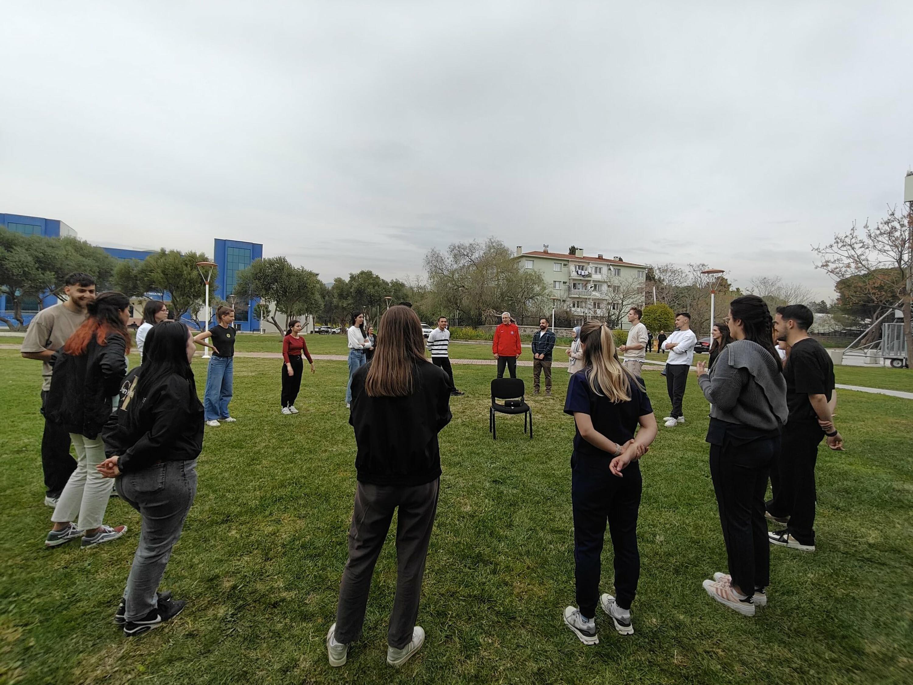 İZMİR, (DHA)-EGE Üniversitesi (EÜ) Öğrenci Dekanlığı ve Uluslararası İlişkiler Koordinatörlüğü iş birliğiyle ERASMUS programı kapsamında yurt dışından gelen öğrencilere yönelik 'Türkçe Konuşma ve Türk Halk Dansları Eğitimi' etkinliği düzenlendi.