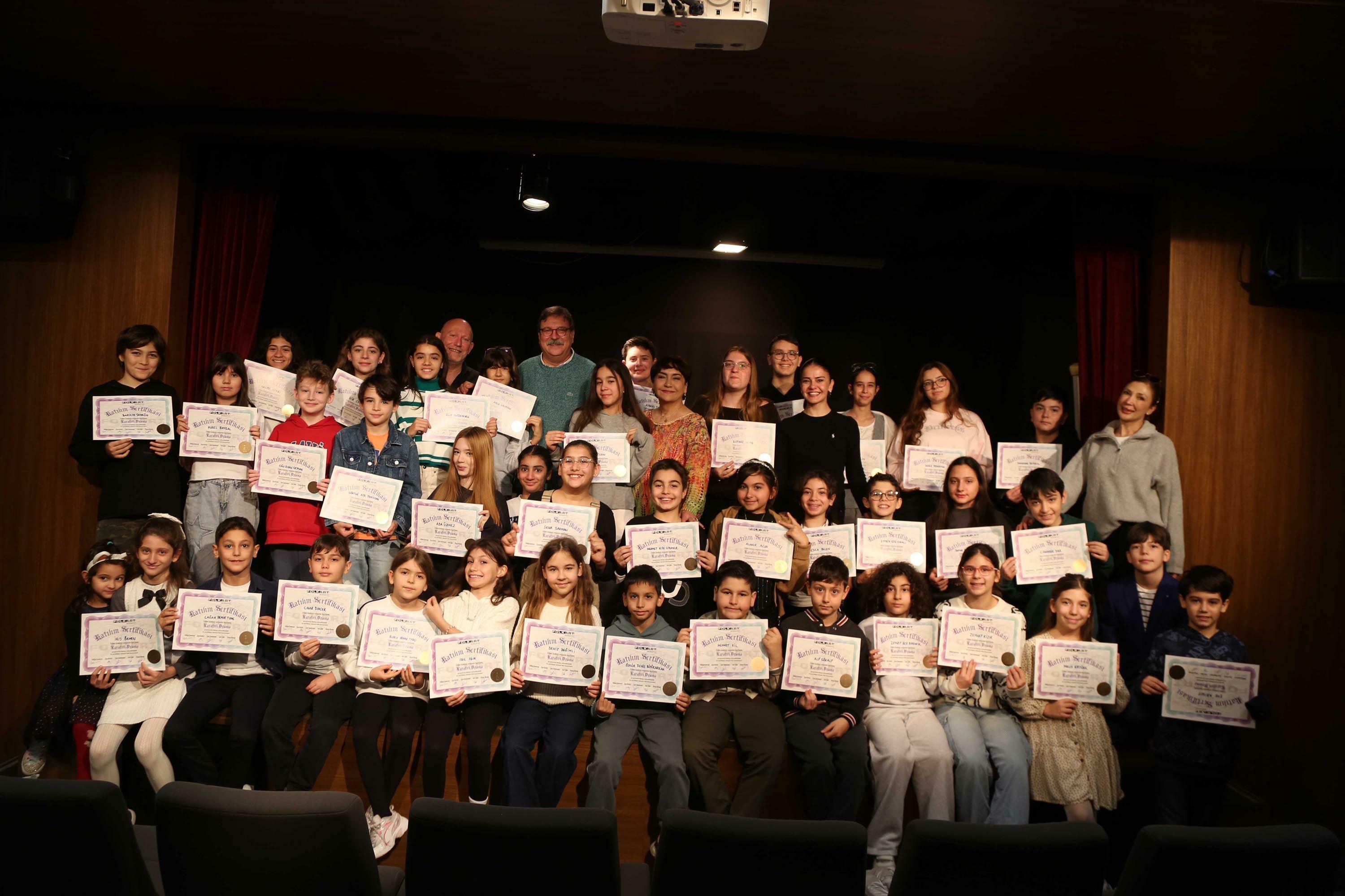 İZMİR, (DHA)-FOLKART Academy, 2025-2026 eğitim döneminde eğitim alan çocuk grubu katılımcıları mezun oldu. Tiyatro merkezli Oyunculuk Atölyesi Çocuk Grubu'nu tamamlayan katılımcılara törenle sertifikaları dağıtıldı.