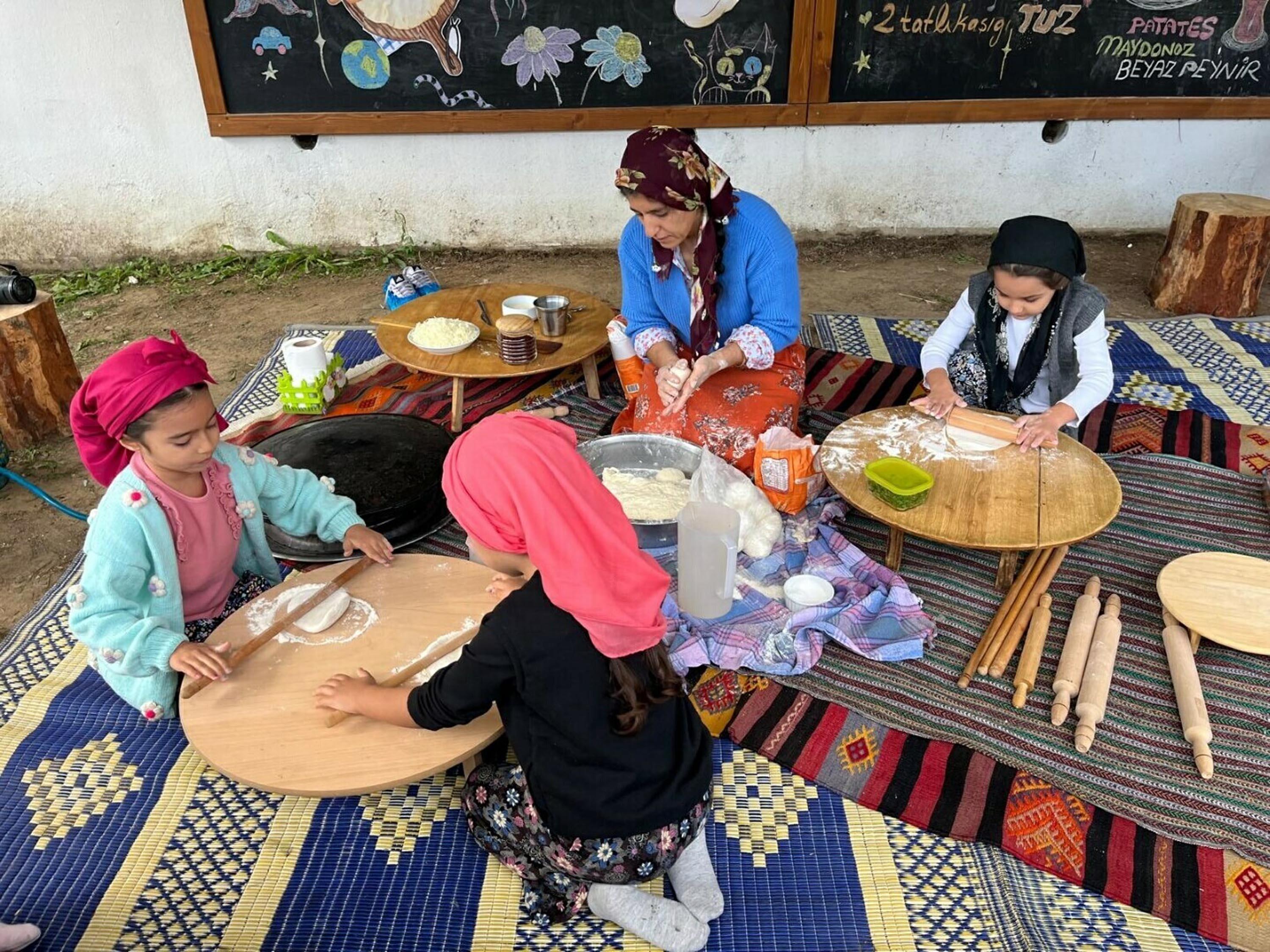 Minikler aileleriyle mutfağa girdi; mantı hamuru açıp, turşu kurdu