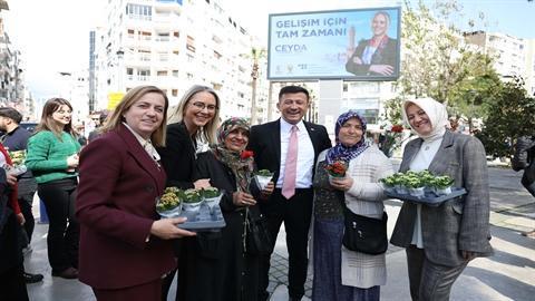 Kadir ÖZEN/İZMİR, (DHA)- AK Parti İzmir Büyükşehir Belediye Başkan Adayı Hamza Dağ, 8 Mart Dünya Kadınlar Günü'nde kadınlara karanfil dağıttı.