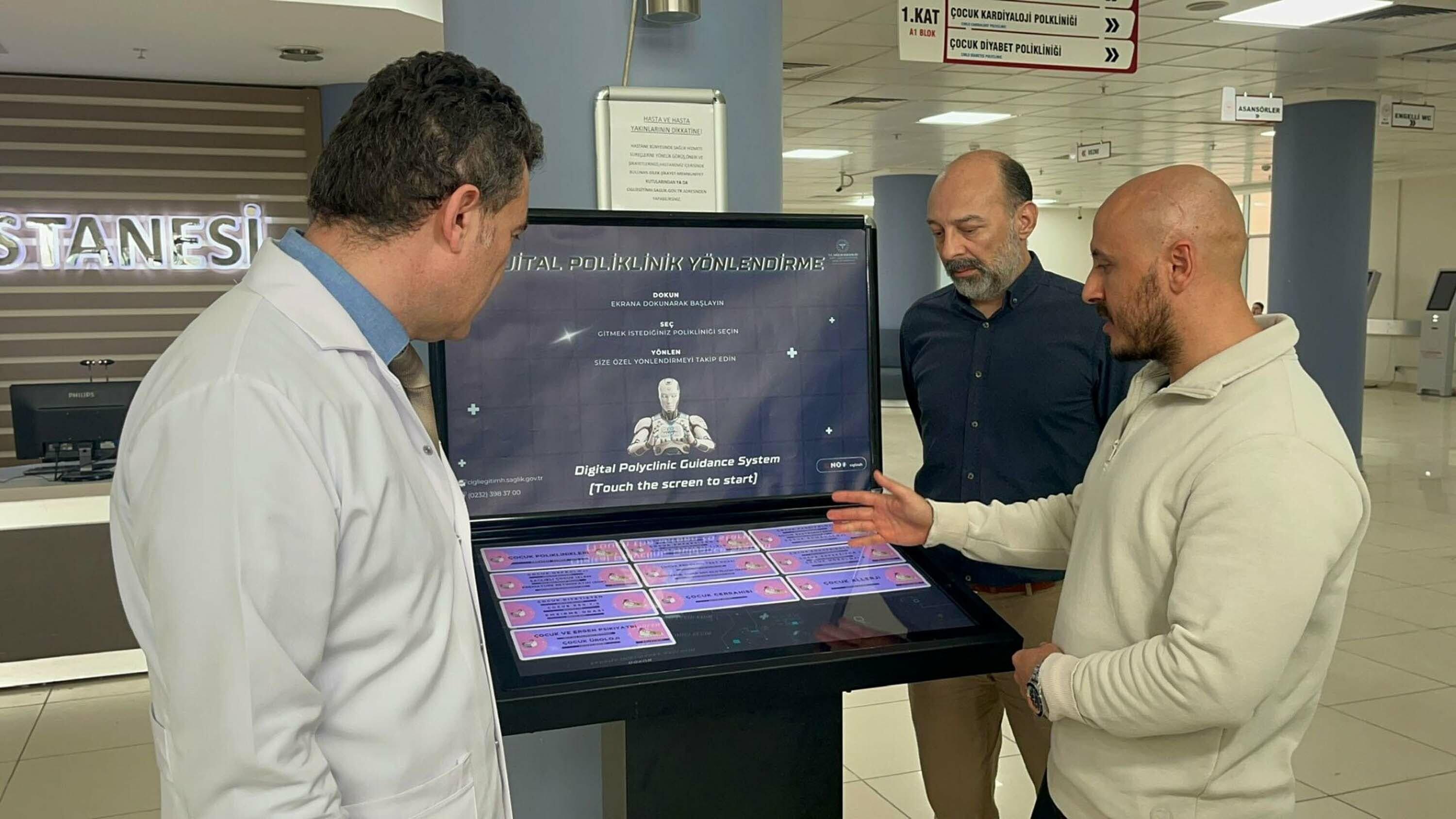 İzmir Bakırçay Üniversitesi Çiğli Eğitim ve Araştırma Hastanesi Basın Danışmanı Emre Yipel, hastane yoğunluğu içinde özellikle işitme ve konuşma engelli bireylerin yön bulmakta zorlandığını fark etti. Bu soruna yönelik çalışma başlatan Yipel, yapay zeka destekli dijital danışma sistemi geliştirdi. Sistem, hastanede kullanılmaya başlandı. Yipel, çalışmayla ilgili, "Vatandaşlar için erişilebilir bir programa ihtiyaç olduğunu düşündüm. Basın sorumlusu olmam nedeniyle video çekimleri ve tasarımları kendim tamamladım. Gerçek görüntüler kullandığımız için kullanıcılar gitmek istedikleri yeri daha kolay bulabiliyor. Ayrıca sistemde seslendirme ile Türkçe ve İngilizce altyazı desteği de bulunuyor. Sistem, internet bağlantısı gerektirmeden çalışıyor ve elektrik kesintilerinden etkilenmiyor. Yaklaşık 15 saniyede yönlendirme yapabiliyor. Kapandığında da kendiliğinden açılarak kullanıma hazır hale geliyor" dedi.