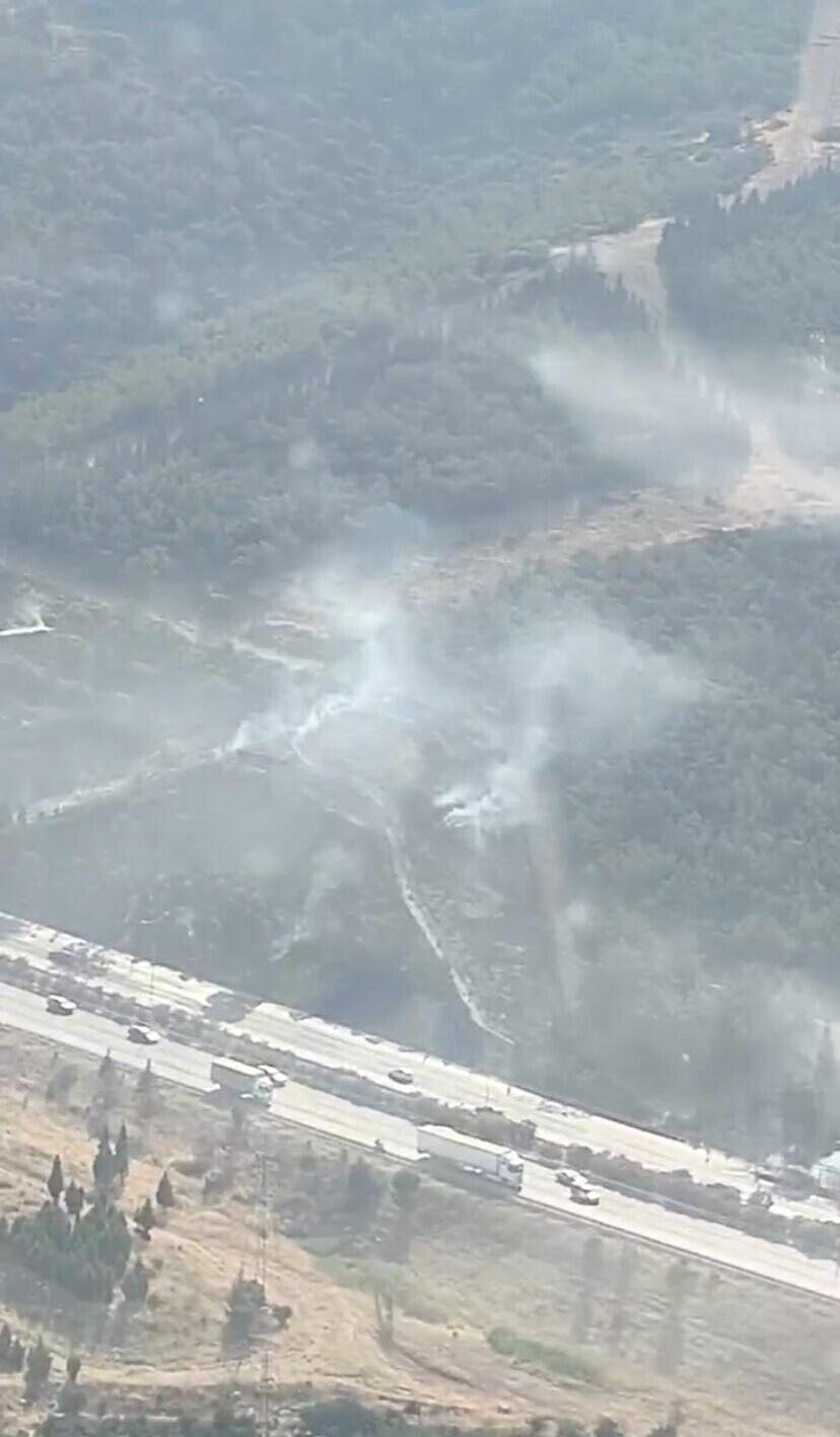 Tolga TAHÇI/İZMİR, (DHA)- İZMİR'de TIR'da çıkan yangın, ormana sıçradı. Bölgeye sevk edilen ekipler, yangına havadan ve karadan müdahale ediyor.