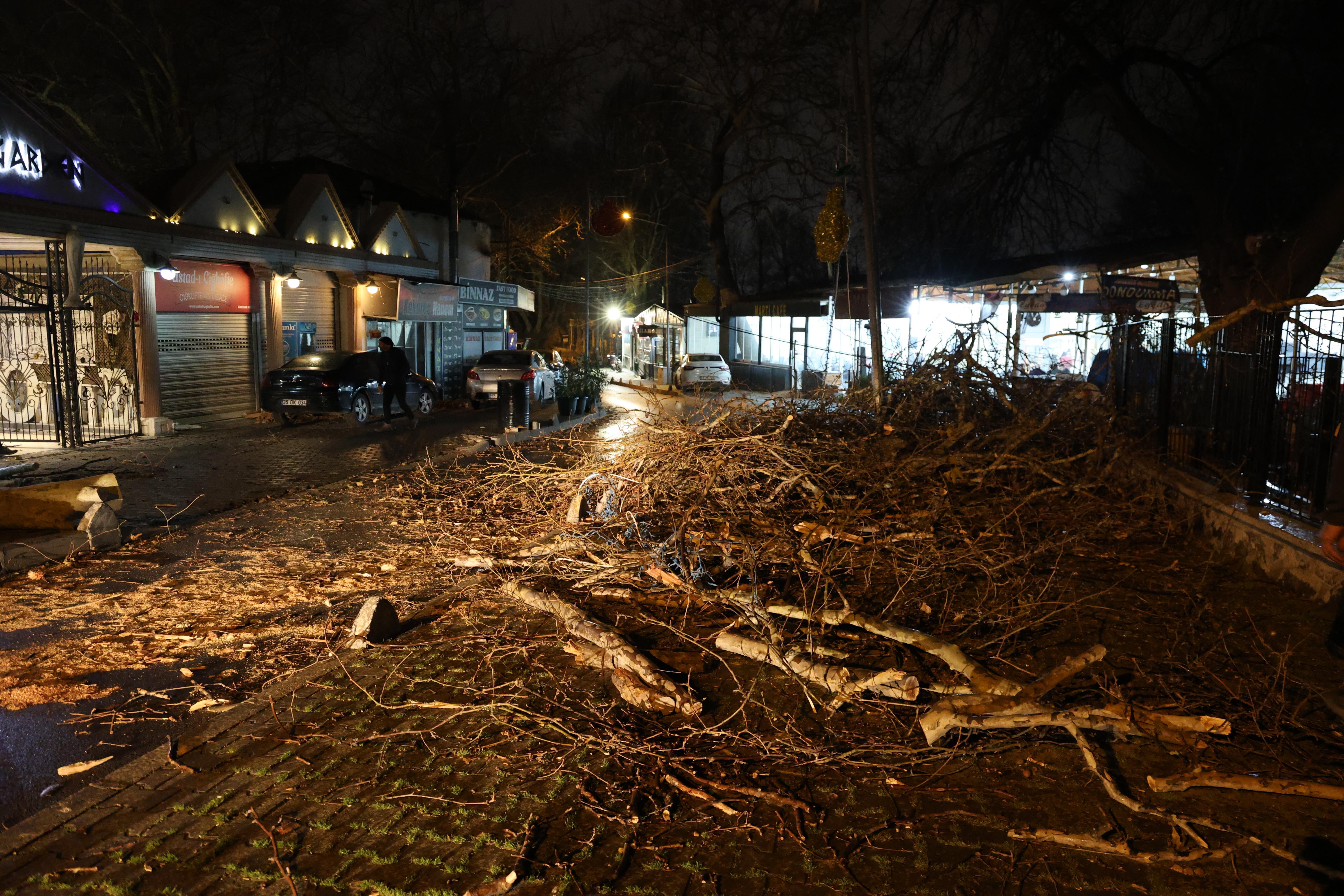 Meteoroloji Genel Müdürlüğü’nün sağanak yağış ve kuvvetli rüzgar uyarısının ardından, dün akşam saatlerinden itibaren Bornova’da şiddetli rüzgar etkili oldu. Pınarbaşı Mahallesi 7033 Sokak’ta bulunan söğüt ağaçlarından bazıları park halindeki bir otomobilin ve yakınlarda bulunan bir düğün salonunun gelin odasının üzerine devrildi. Çevredekilerin ihbarı üzerine olay yerine gelen polis ekipleri, güvenlik amacıyla yolu trafiğe kapattı. Ağaç, belediye ekiplerince kesilerek bulunduğu yerden kaldırıldı. Olayda, otomobilde ve düğün salonunun gelin odasında hasar oluşurken, çalışmaların ardından yol yeniden ulaşıma açıldı.(DHA)