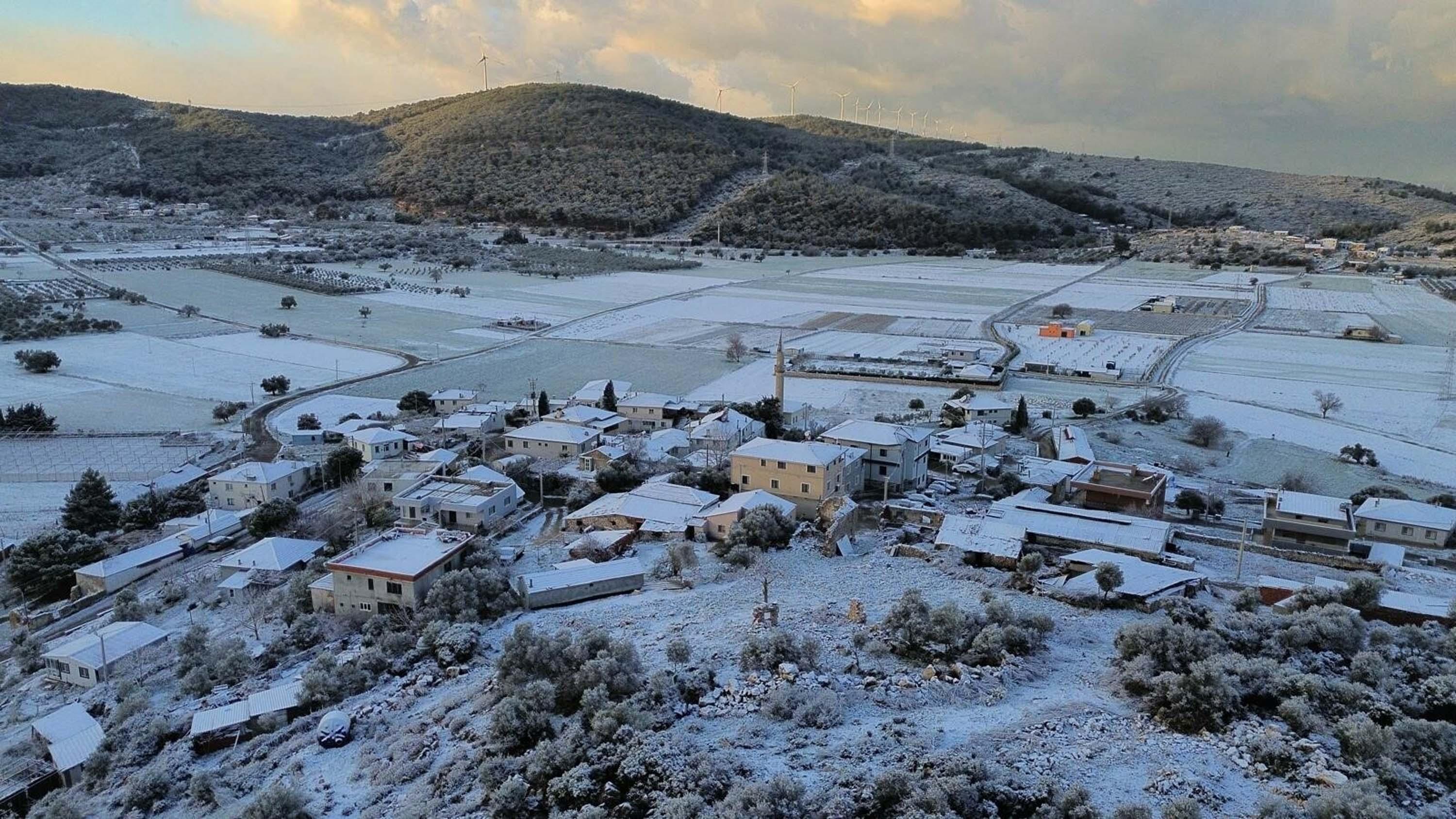 İzmir'de gece saatlerinde başlayan kar yağışı Urla'nın Nohutalan ve Uzunkuyu mahalleleri ile Karaburun'un Bozdoğan ilçesinin yüksek kesimlerinde etkili oldu. Sabah saatlerinde de etkisini sürdüren kar yağışının ardından kırsal yerleşim yerlerindeki bağ ve bahçeler ile yollar, beyaz örtüyle kaplandı. Bölgede oluşan seyirlik manzara, dron ile görüntülendi. (DHA)