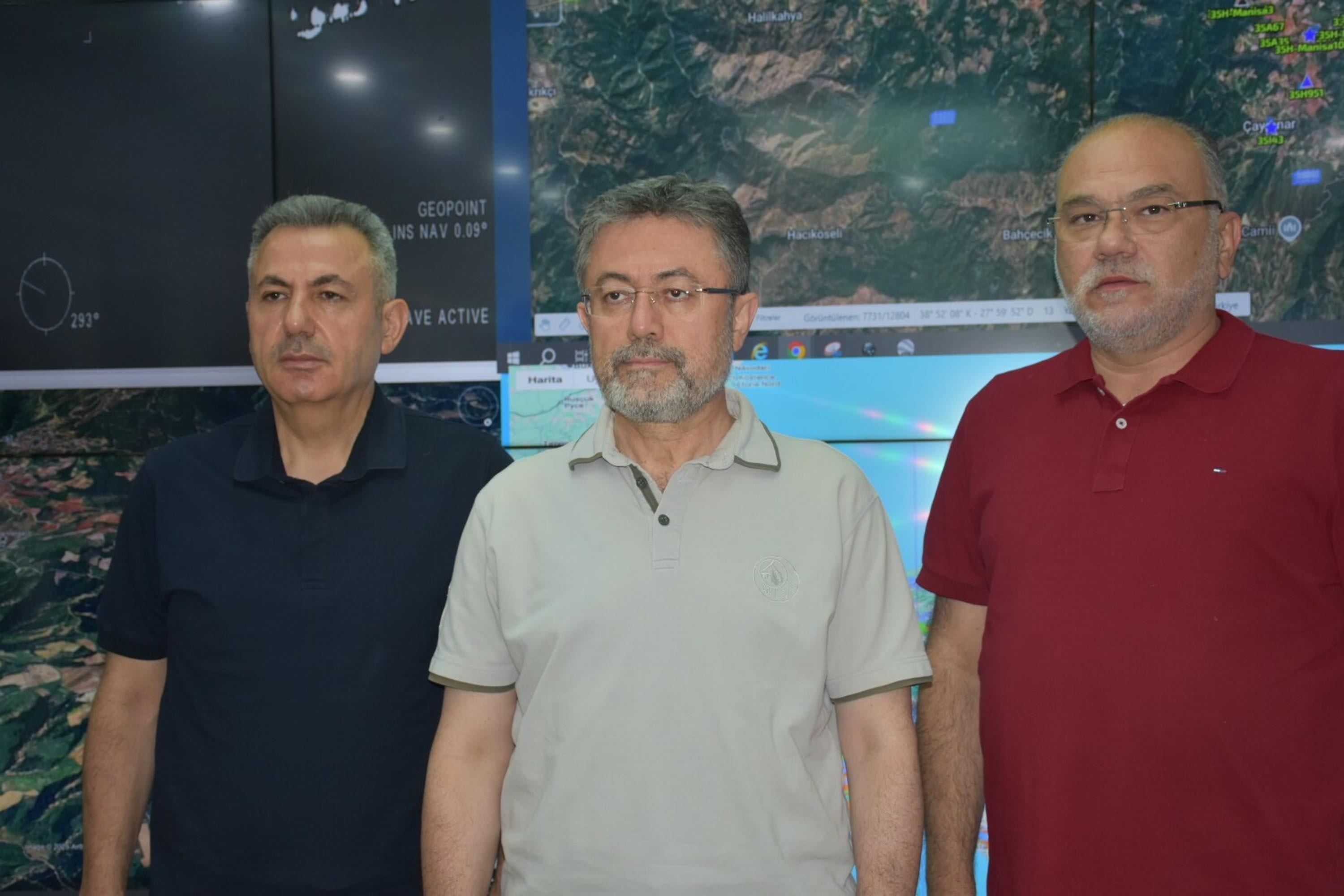 Manisa'daki yangınlara da değinen Bakan Yumaklı, "Manisa Akhisar'daki yangını kontrol altına alma konusunda iyimserdik ancak bizleri de şaşırtan çok ciddi bir rüzgar oluştu. Belli bir alana yayıldı. Biz o mücadeleye devam edip, bu sabaha kadar halletmeyi düşünürken Kula'dan ve Ahmet'i de maalesef yangın ihbarları aldık. Buradaki yangına 7 uçak 10 helikopter, 175 arazöz, birçok kuruma ait iş makineleri ve destek ekipler geldi. Onlara da teşekkür ediyoruz. Buradaki 3 yangına da ekiplerimiz, karadan müdahalelerine devam edecekler" dedi.