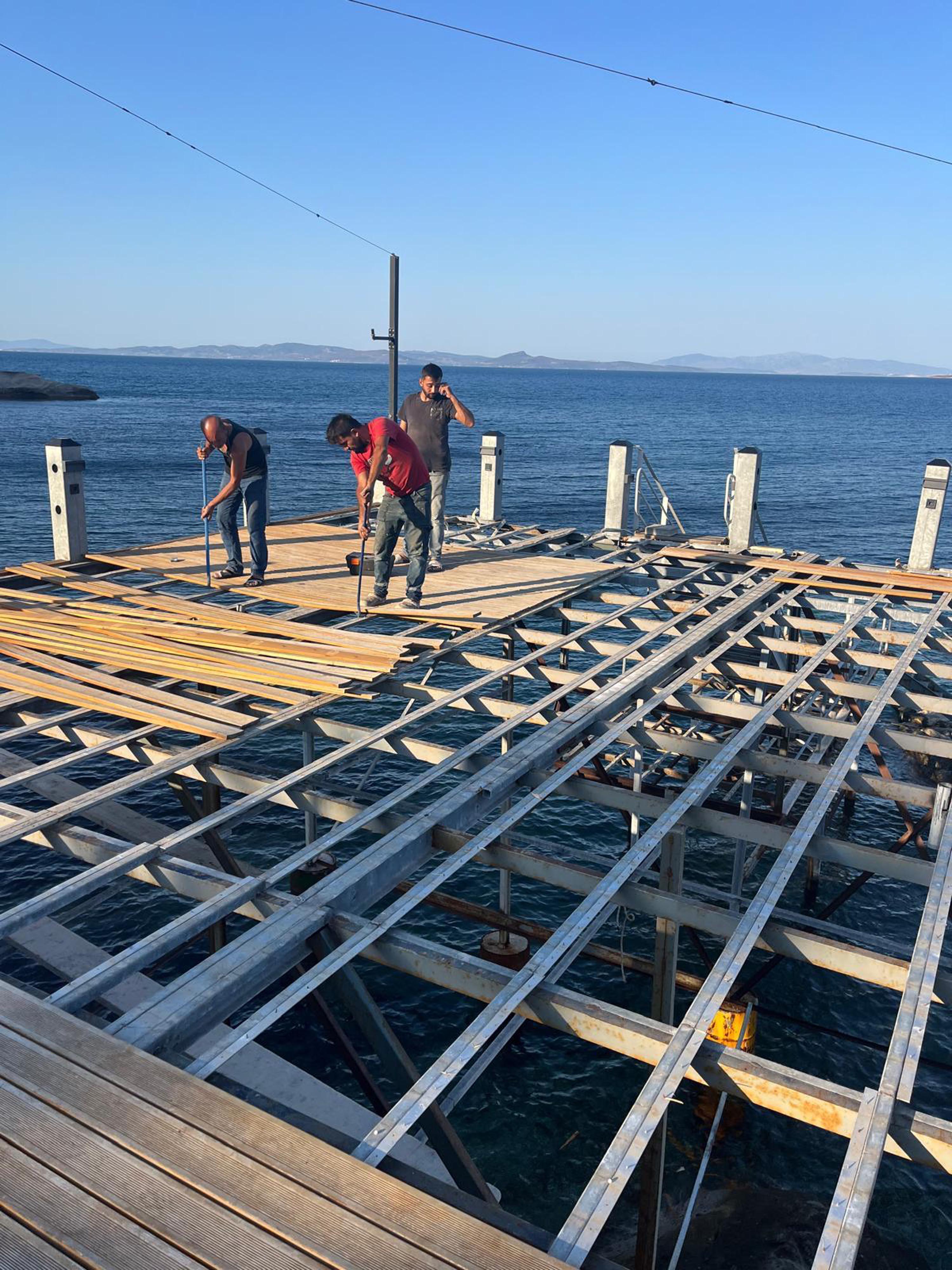 Çevre, Şehircilik ve İklim Değişikliği İl Müdürlüğü, Karaburun Belediyesi ve İzmir Büyükşehir Belediyesi arasındaki yazışmalar doğrultusunda yıkım sürecinin İzmir Büyükşehir Belediyesi tarafından tamamlanması yönünde harekete geçildi. Söz konusu mevzuata aykırı iskelenin kaldırılması için işletmeye 3 Mayıs 2024 tarihinde tebligat yapıldı ve 15 günlük süre tanındı. 15 günlük süre sonrasındaiskelenin kaldırılmadığı Büyükşehir Belediyesi’nce tespit edildi. İskelenin Büyükşehir Belediye Başkanlığı’nca 22 Temmuz 2024 tarihinde yıkılmasına karar verilerek tüm kurumlara bilgilendirme yapıldı. Ancak 22 Temmuz tarihinde yıkım alanına girilemedi. Denizden iskeleye ulaşılmaya çalışıldı ancak yüzen vatandaşların bulunması nedeni ile can güvenliği hassasiyeti gözetilerek işlem sonlandırıldı. Büyükşehir Belediyesi yeniden yıkım yapılmasına karar vererek 2 Ağustos 2024 tarihini belirledi ve ilgili tüm kurumlara bilgilendirme yaptı. 1 Ağustos 2024 tarihinde işletme tarafından mevzuata aykırı iskelenin söküm işlemine başlandığı bilgisi yazılı olarak Büyükşehir Belediyesi’ne iletildi. Yıkım tarihi olan 2 Ağustos’ta alanda söküm işleminin devam ettiği gözlendi. İzmir Büyükşehir Belediyesi ekipleri belirlenen sürede söküm işlemlerinin tamamlanmasına yönelik tutanak tutarak alandan ayrıldı.(DHA)