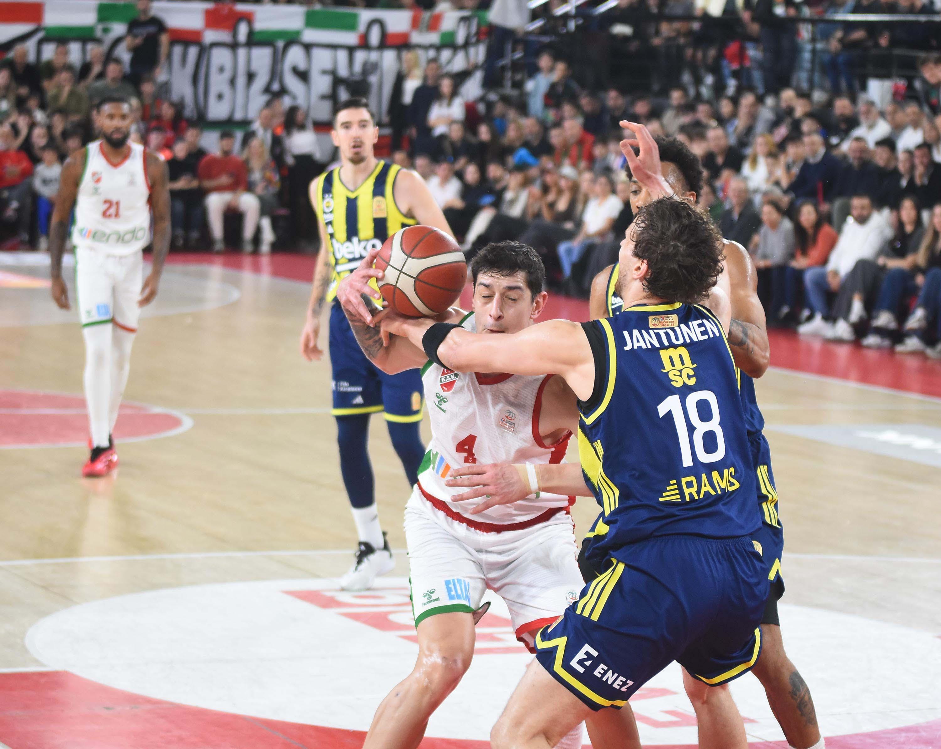 İZMİR, (DHA)- TÜRKİYE Sigorta Basketbol Süper Ligi'nde düşme hattından kurtulma savaşı veren ligin en köklü ekiplerinden Karşıyaka evinde lig ve EuroLeague'de lider olan güçlü rakibi Fenerbahçe Beko'ya direnemedi. Maçta ilk periyot dışında sahada varlık gösteremeyen Kaf-Kaf parkeden 36 sayı farkla, 91-55 mağlup ayrıldı. Karşıyaka yenilmesine rağmen salonu tıklım tıklım doldurup ay-yıldızlı bayraklarımızla donatan yeşil-kırmızılı taraftarlar tribünde takımlarına büyük destek ve moral verdi. Ligde üst üste ikinci yenilgisini alan Karşıyaka sezonun son 12 haftasına 18 maçta 4 galibiyetle düşme potasında girdi. Mali sıkıntılarını aşıp takıma maaş ödemelerini yapmaya çalışan İzmir temsilcisi ligde haftaya Anadolu Efes deplasmanına çıkacak.