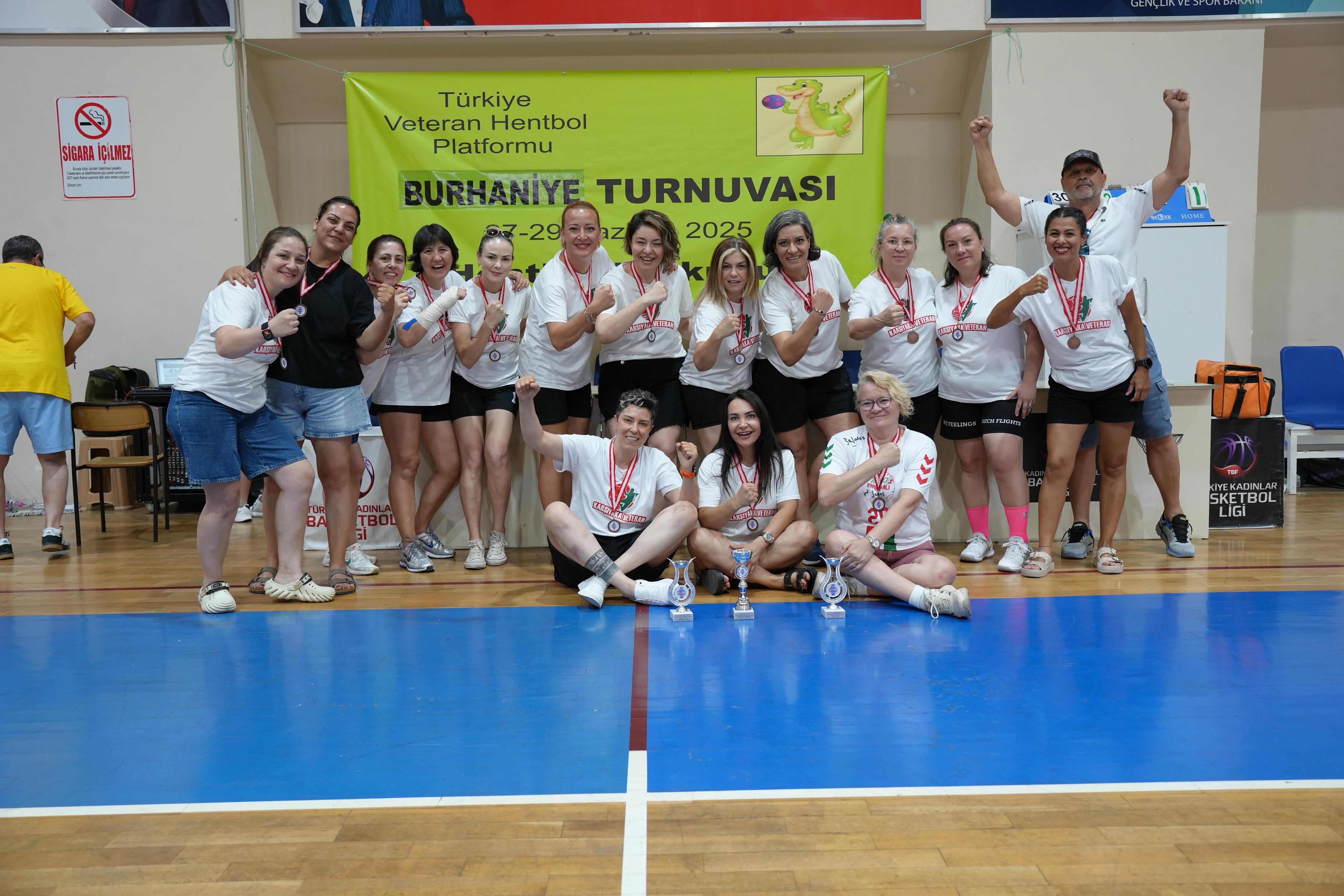 İZMİR, (DHA)-TÜRKİYE Veteran Hentbol Platformu tarafından düzenlenen Burhaniye Turnuvası'na katılan Karşıyaka Veteran Hentbol takımı, turnuvayı namağlup tamamlayarak birincilik kupasını kaldırdı. Turnuvanın, 'En İyi Kadın Oyuncu' ödülü ise Karşıyaka Veteran Hentbol takımından performansıyla göz dolduran eski milli hentbolcu İlke Şen'in oldu. Türkiye Veteran Hentbol Platformu 27-29 Haziran tarihleri arasında Burhaniye Turnuvası düzenledi. Organizasyona 5'i kadın, 4'ü erkek takım olmak üzere toplamda 144 sporcu katıldı.