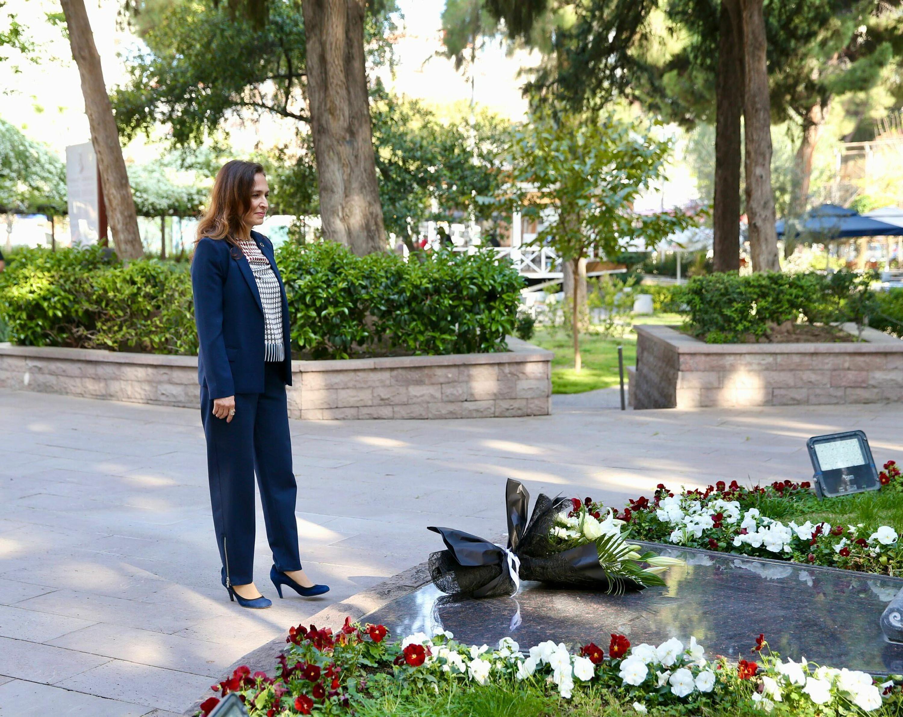 İZMİR, (DHA)-KARŞIYAKA Belediye Başkanı seçilen Behice Yıldız İşçimenler Ünsal ilk mesai gününde, Zübeyde Hanım Anıt Mezarı'nı ziyaret etti. CHP İlçe Başkanı Levent Güçlü ve meclis üyeleriyle birlikte anıt mezara çiçek bırakan Ünsal, "Atamızın bize en büyük emaneti olan Zübeyde Hanım'a ve Onun aziz hatırasına her zaman sahip çıkacağız" dedi.