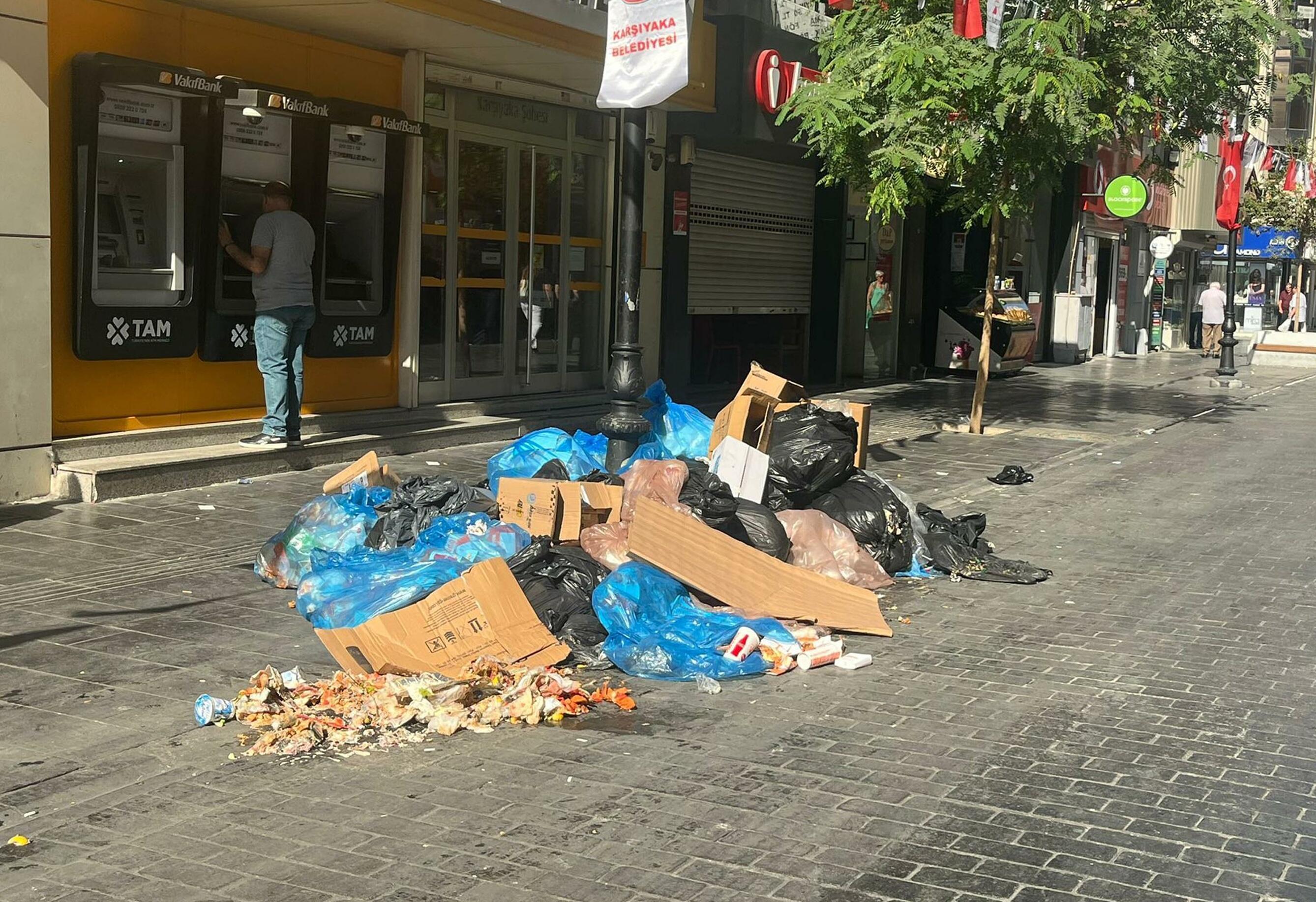 İzmir Karşıyaka'da grev kararı sonrası sokaklarda çöp yığınları oluştu