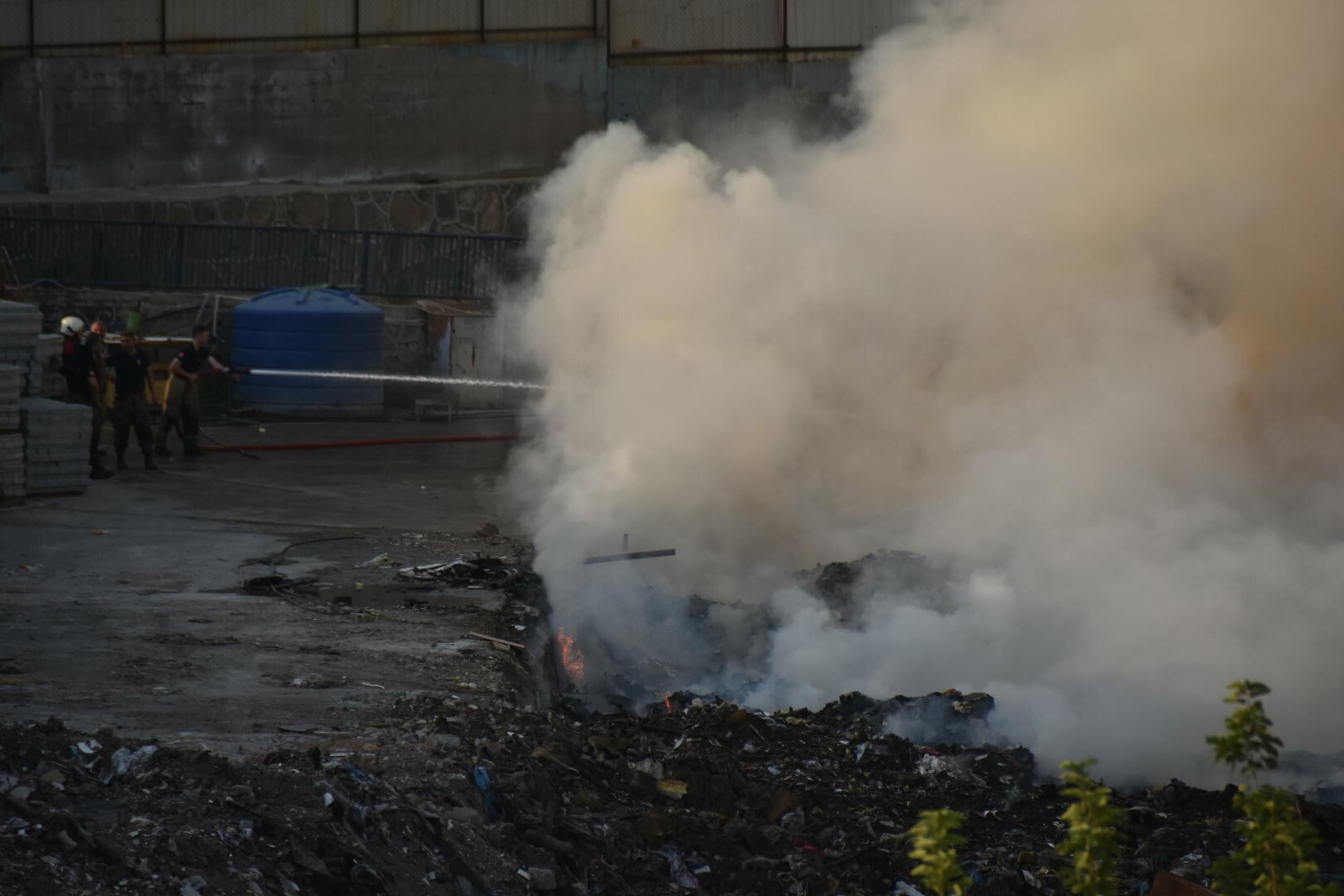 Latife Hanım Mahallesi'ndeki Örnekköy Sanayi Sitesi'ndeki Karşıyaka Belediyesi Katı Atık Arıtma Tesisi'ndeki çöplük alanda, saat 05.30 sıralarında yangın çıktı. Yamanlar Dağı'nın eteklerinde bulunan ve geçen yılki büyük yangının izlerini taşıyan alana yakın bölgede çıkan yangın, çevredekileri tedirgin etti. Yangını görenler, durumu itfaiyeye bildirdi. İhbarla alana gelen itfaiye ekipleri, yangını 06.30 sıralarında kontrol altına aldı. Yangını söndürme çalışmalarına, tedbir amaçlı olarak İzmir Orman Bölge Müdürlüğü'ne bağlı ekipler de katıldı. Soğutma çalışmalarının sürdüğü bildirildi. (DHA)
