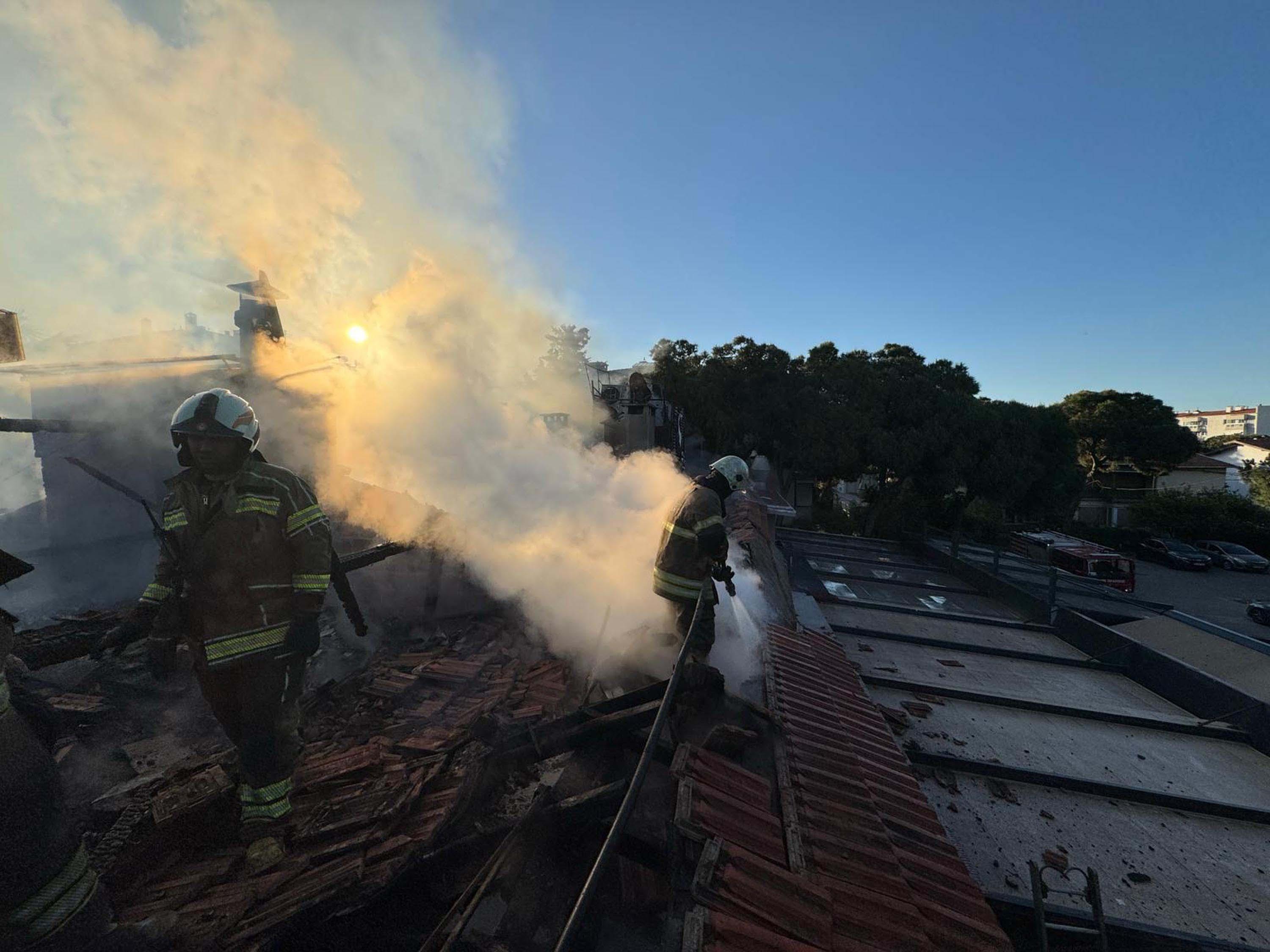 Restoranın çatısında çıkan yangında alevler, çevredeki yapılara da sıçradı