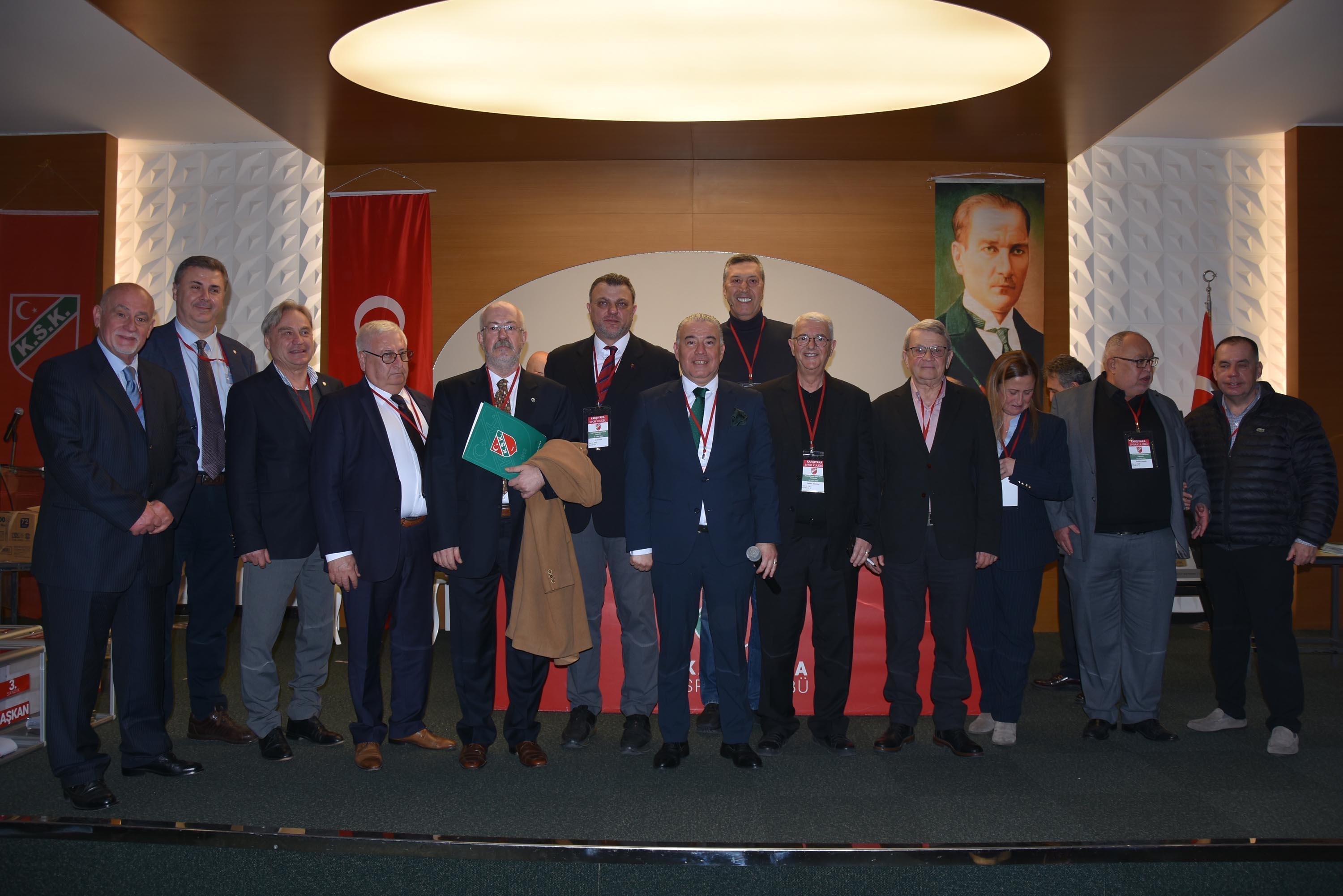 Ergin KARATAŞ / İZMİR, (DHA)- KARŞIYAKA Spor Kulübü'ndeki divan yönetim kurulunda başkanlığa Mehmet Yaya seçildi. Zübeyde Hanım Nikah Evi'nde gerçekleştirilen kongreye kulüp üyelikleri 25 yılı aşan 168 divan üyesi katılırken, seçimde Halil Zeki Osman'ın listesiyle yarışan Mehmet Yaya ve ekibi 113 oyla, 62 oy alan rakiplerini geride bırakarak divan yönetimine geldi. Toplantıya seçimde Mehmet Yaya'ya destek veren eski başkanlardan Turgay Büyükkarcı'nın yanı sıra Fatih Diniz, Mutlu Altuğ, Seyhan Evlioğlu, Hüseyin Çalışkan, kulübün eski yönetici, teknik direktör, antrenör ve milli sporcular katılırken, oylama sonucunda iki aday el ele güçbirliği mesajı verdi.