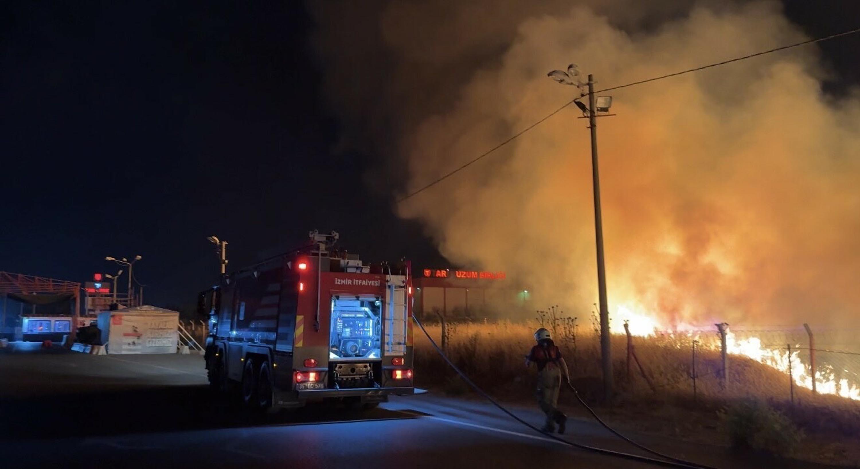 İzmir'de otluktaki yangın 1 saatte söndürüldü