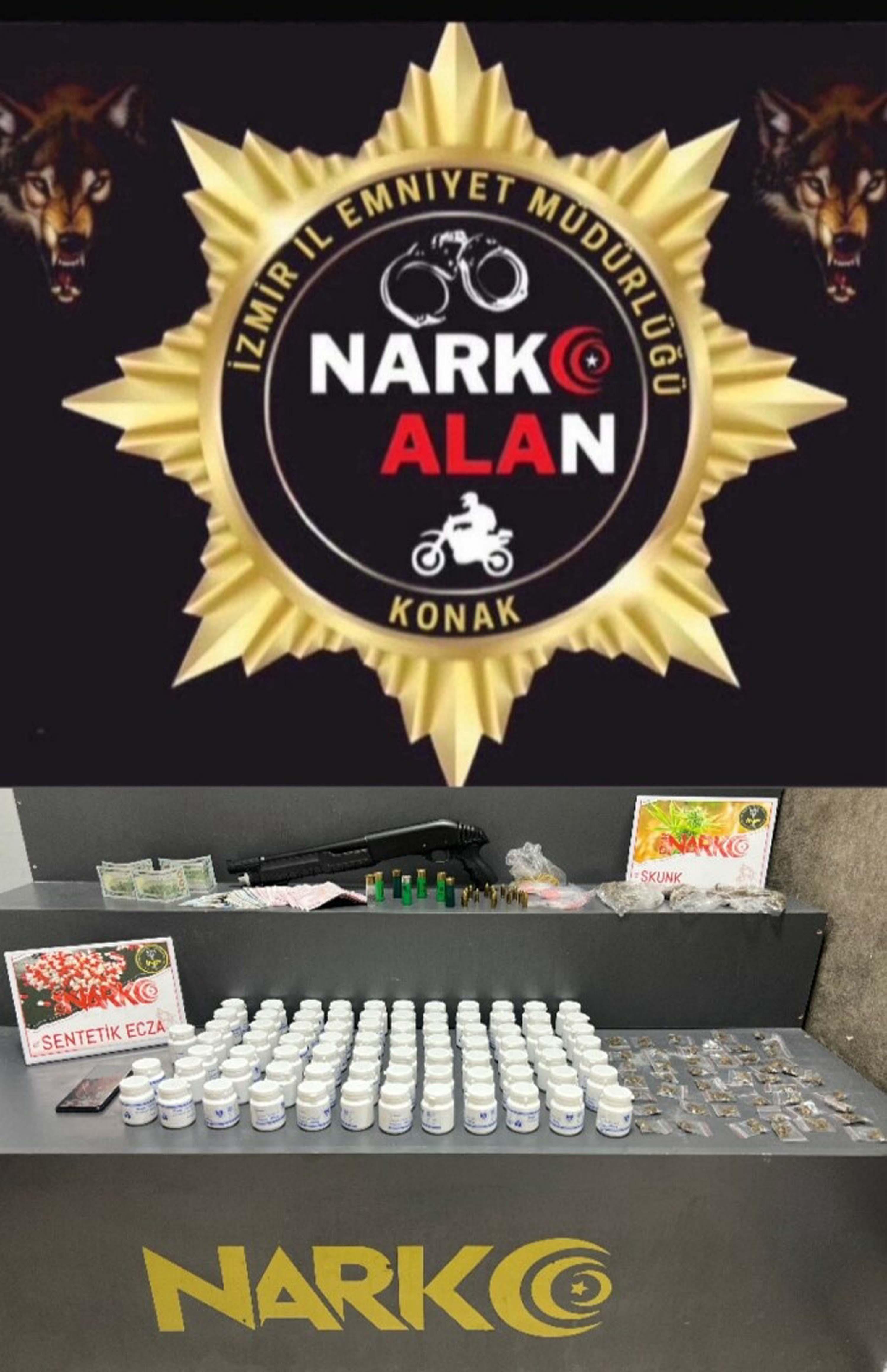 Konak İlçe Emniyet Müdürlüğü ve Narkotik Suçlarla Mücadele Şube Müdürlüğü ekiplerinden oluşan Narko Alan timleri, 11-18 Haziran tarihleri arasında operasyonlar gerçekleştirdi. Konak genelinde 10 farklı iş yeri ve ikamete düzenlenen operasyonlarda; 74,05 gram bonzai, 1,28 gram kokain, 878,18 gram metamfetamin, 4 bin 769 sentetik hap, 3 kilo 743,19 gram esrar, 2 hassas terazi, 181 bin 100 Türk lirası, pompalı tüfek ve 15 fişek ele geçirildi. Operasyonlar kapsamında gözaltına alınan 14 şüpheliden 13'ü çıkarıldıkları mahkemece tutuklandı, 1'i adli kontrol şartıyla serbest bırakıldı. Ayrıca hakkında 5 yıl ve 5 yıl 2 ay 15 gün kesinleşmiş hapis cezası bulunan iki şüpheli de yakalandı. (DHA)