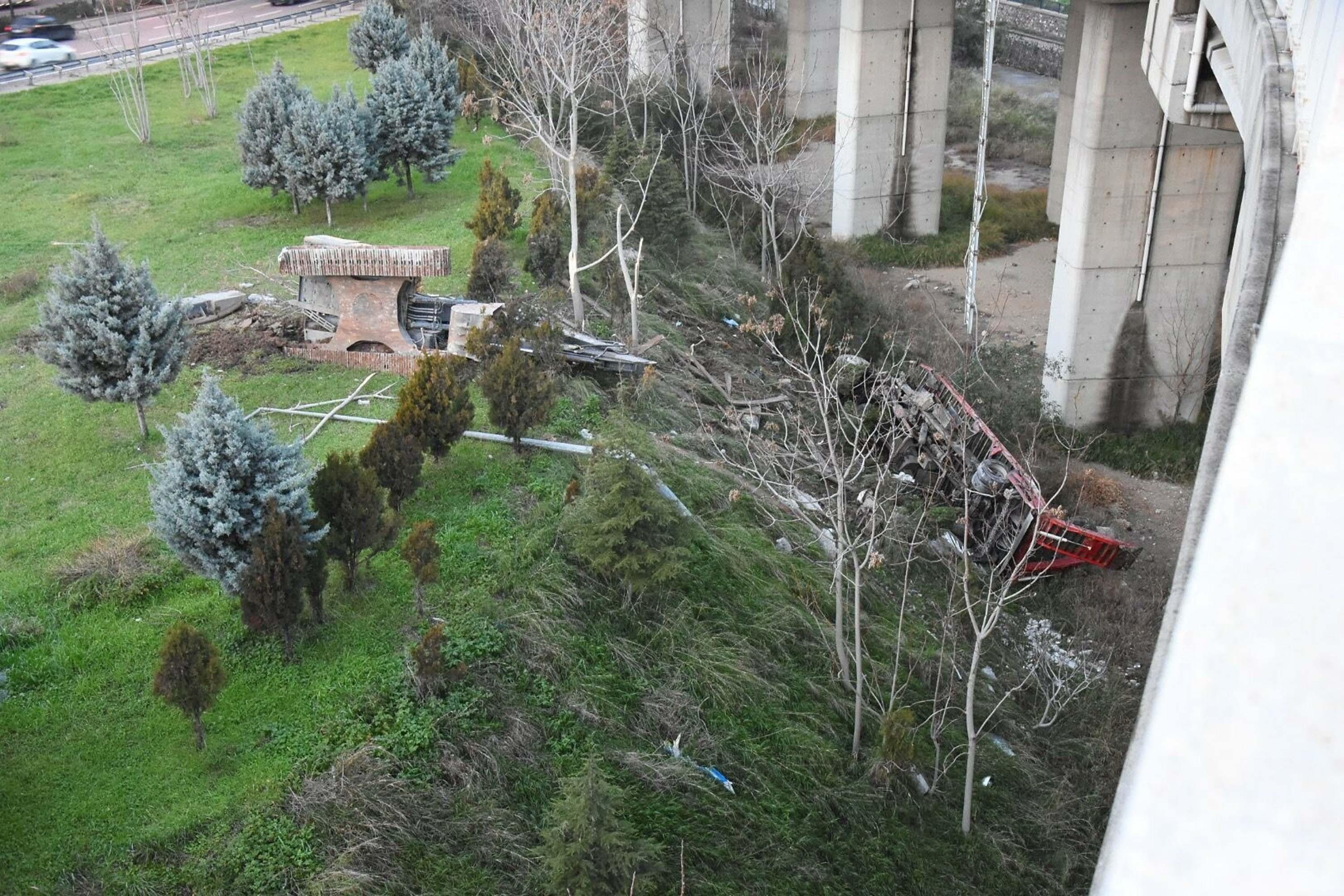 Kamyonete çarpan TIR, viyadükten aşağı düştü; 3 yaralı