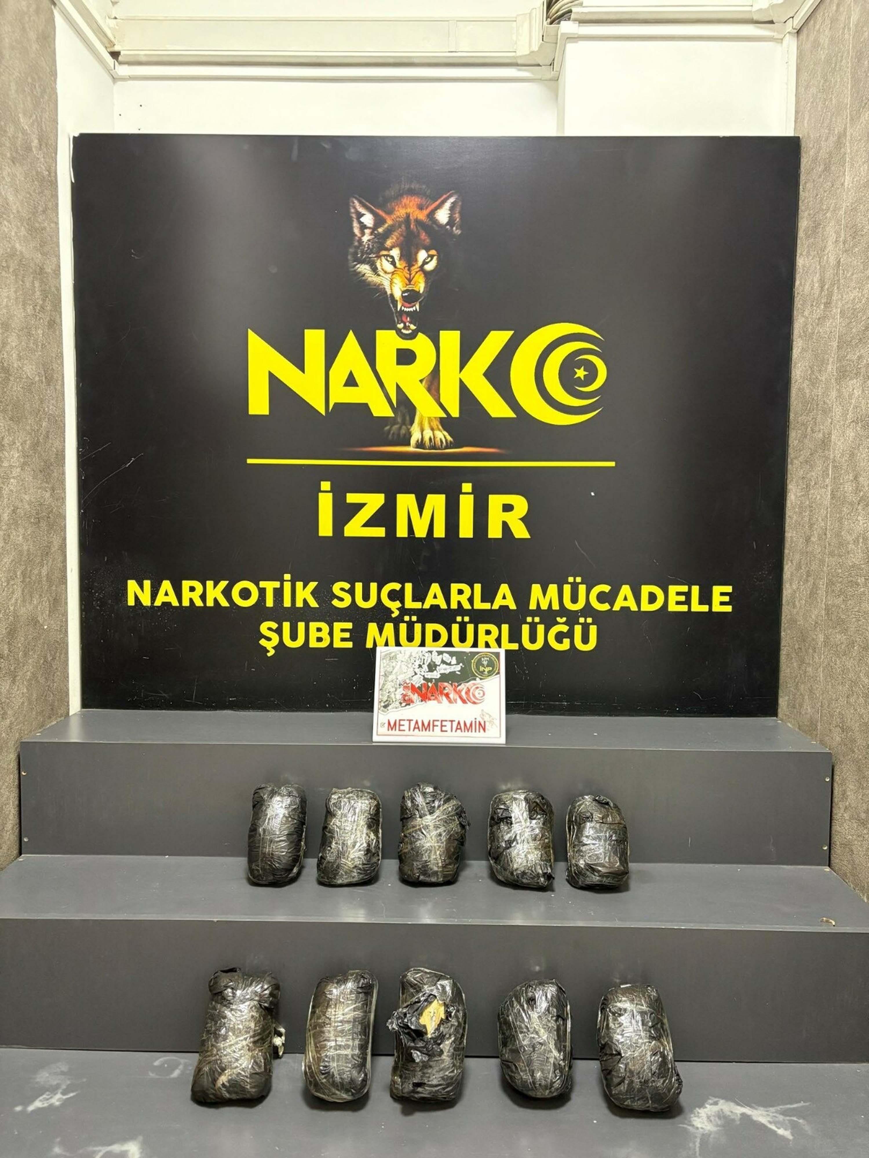 İzmir Cumhuriyet Başsavcılığı koordinesindeki Narkotik Suçlarla Mücadele Şube Müdürlüğü tarafından başlatılan çalışma kapsamında, önceki gün Konak ilçesinde, şüphe üzerine bir otomobil durduruldu. Özel eğitimli narkotik dedektör köpeği 'Alis' ile yapılan aramada 10 kilo 150 gram metamfetamin ele geçirildi. Otomobili kullanan şüpheli gözaltına alındı. Polisteki işlemlerinin ardından adliyeye sevk edilen şüpheli, çıkarıldığı mahkemede tutuklandı. (DHA)