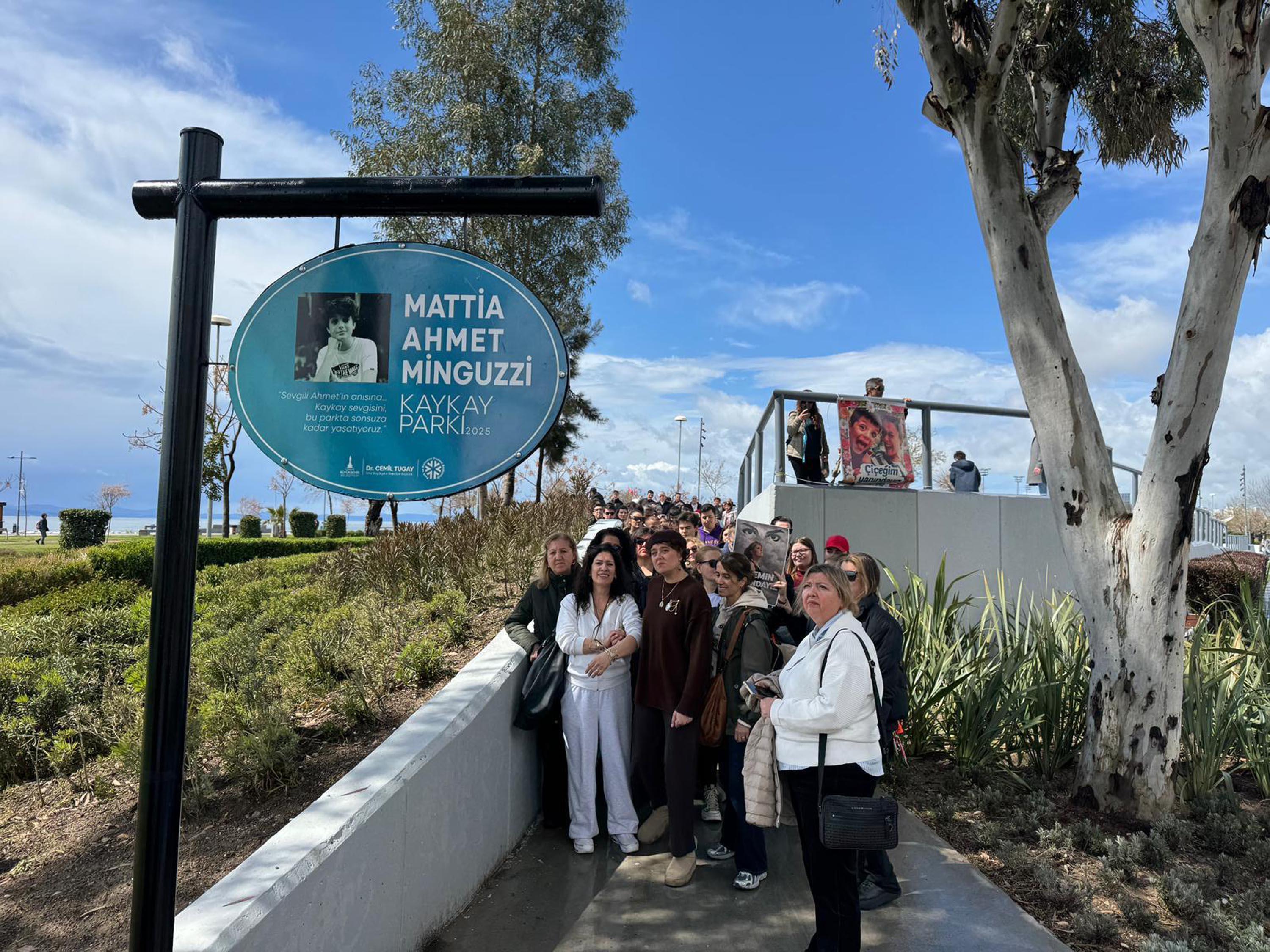 İzmir Büyükşehir Belediyesi tarafından Minguzzi'nin adı verilen Karşıyaka'daki kaykay parkı bir etkinliğe ev sahipliği yaptı. 28 Mart'ta oğullarının adının parka verilmesi nedeniyle İzmir Büyükşehir Belediye Başkanı Cemil Tugay'a teşekkür ziyaretinde bulunan Minguzzi ailesi, pazar günü de kaykay parkını ziyaret etti. İzmir halkı da aileyi yalnız bırakmadı. Ahmet Minguzzi'nin annesi Yasemin Minguzzi'ye eşlik eden İzmirli kadınlar, Mattia Ahmet Minguzzi fotoğrafları ve "Yasemin çiçeğimizin yanındayız" sloganıyla yürüdü. İzmirliler ailenin üzüntüsüne ortak olurken, sokak güvenliğinin önemine dikkat çekerek, gençlerin korunmasına yönelik beklentilerini dile getirdi. (DHA)