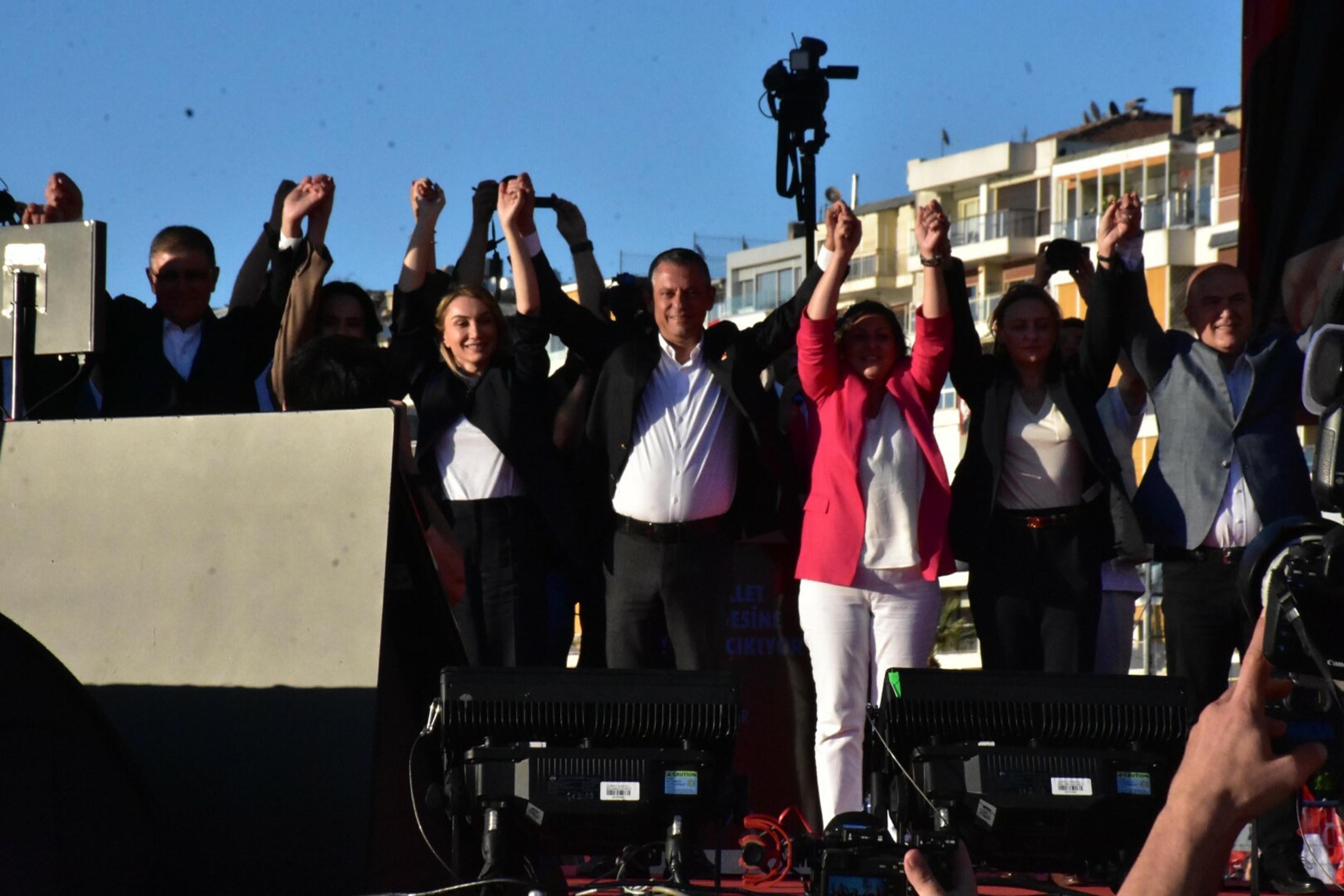 CHP Genel Başkanı Özgür Özel’in çağrısıyla düzenlenen kent mitingleri kapsamında İzmir'de 'Millet İradesine Sahip Çıkıyor’ mitingi düzenlendi. Gündoğdu Meydanı'ndaki mitinge CHP milletvekilleri, CHP il ve ilçe başkanları, belediye başkanları, partililer ve vatandaşlar katıldı. Mitinge ayrıca İstanbul Büyükşehir Belediye Başkanı Ekrem İmamoğlu’nun eşi Dilek Kaya İmamoğlu da katıldı. Mitingde İzmir Büyükşehir Belediye Başkanı Cemil Tugay, İzmirlilere seslendi. CHP İzmir İl Başkanı Şenol Aslanoğlu da Ekrem İmamoğlu’nun mesajını okudu. Mitingde konuşan Özel, "İzmir CHP’nin değil Cumhuriyet'in kalesidir. Cumhuriyet’in, milletin kalesinden sesleniyoruz; kale siyaseti, kutuplaşma, karşısını şeytanlaştırma, kavgadan medet umma siyaseti, kaleler bitmiştir. Kaleler milletindir, Cumhuriyeti’ndir, tüm kalelerimiz bu milletin istikbaline feda olsun" dedi.
