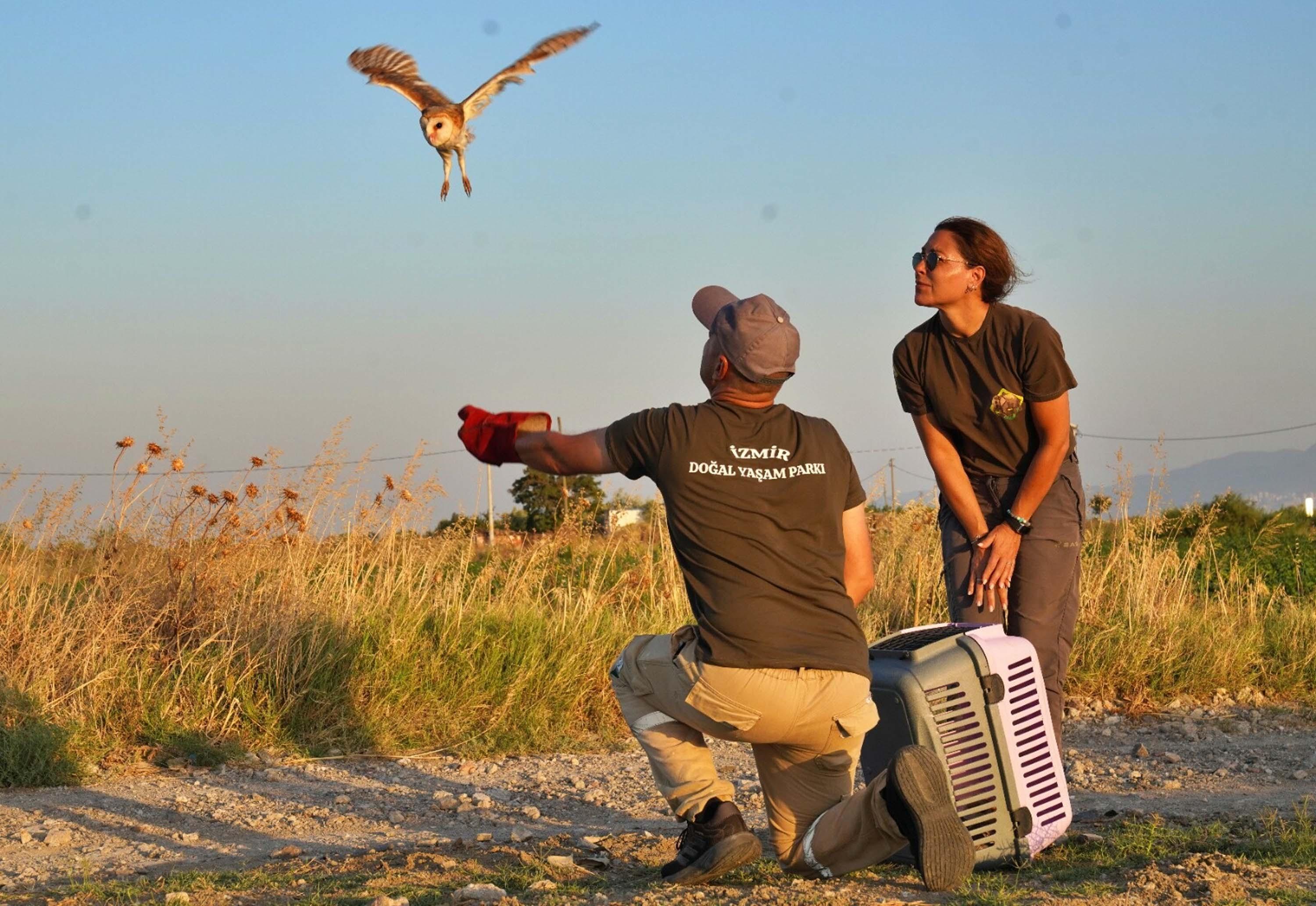 İZMİR, (DHA)-İZMİR Büyükşehir Belediyesi Doğal Yaşam Parkı'nda bugüne kadar bin 300 yaban hayvanı iyileştirilip yeniden doğaya salındı. Bunlar arasında doğada annesiz kalan 6 peçeli baykuş da vardı. Minik yavrular bakıcılar tarafından özenle büyütüldükten sonra özgürlüğe kanat çırptı.