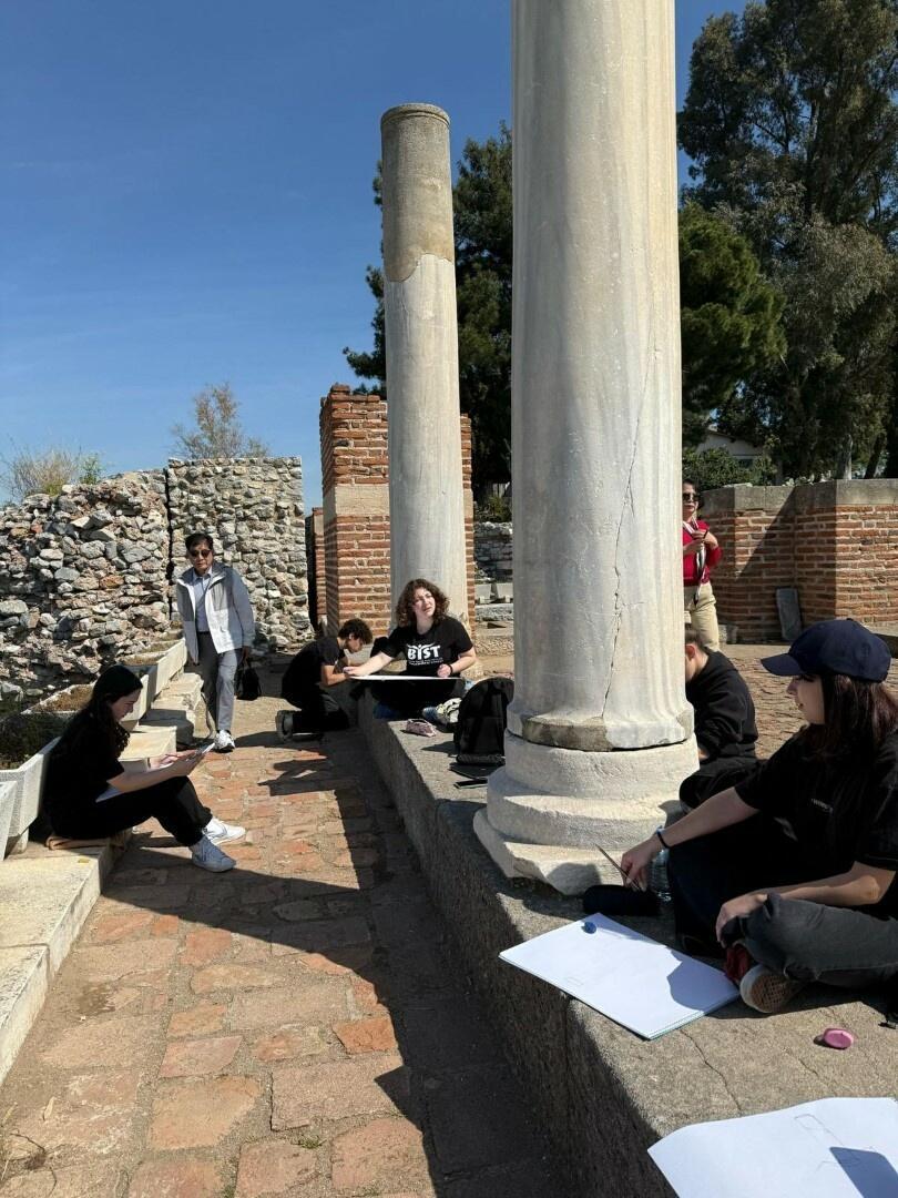 Yağmur ÖNGÜN/İZMİR, (DHA)- İZMİR Selçuk Borsa İstanbul Şehit Ömer Halisdemir Anadolu Lisesi öğrencileri, 'Liselerde Bilim Uygulamaları' projesi ve 'Tarih İçinde Sanat' etkinliği kapsamında St. John Bazilikası ile Ayasuluk Kalesi'ni ziyaret edip, tarihi mekanların atmosferinden ilham alarak gördüklerini resme döktü.