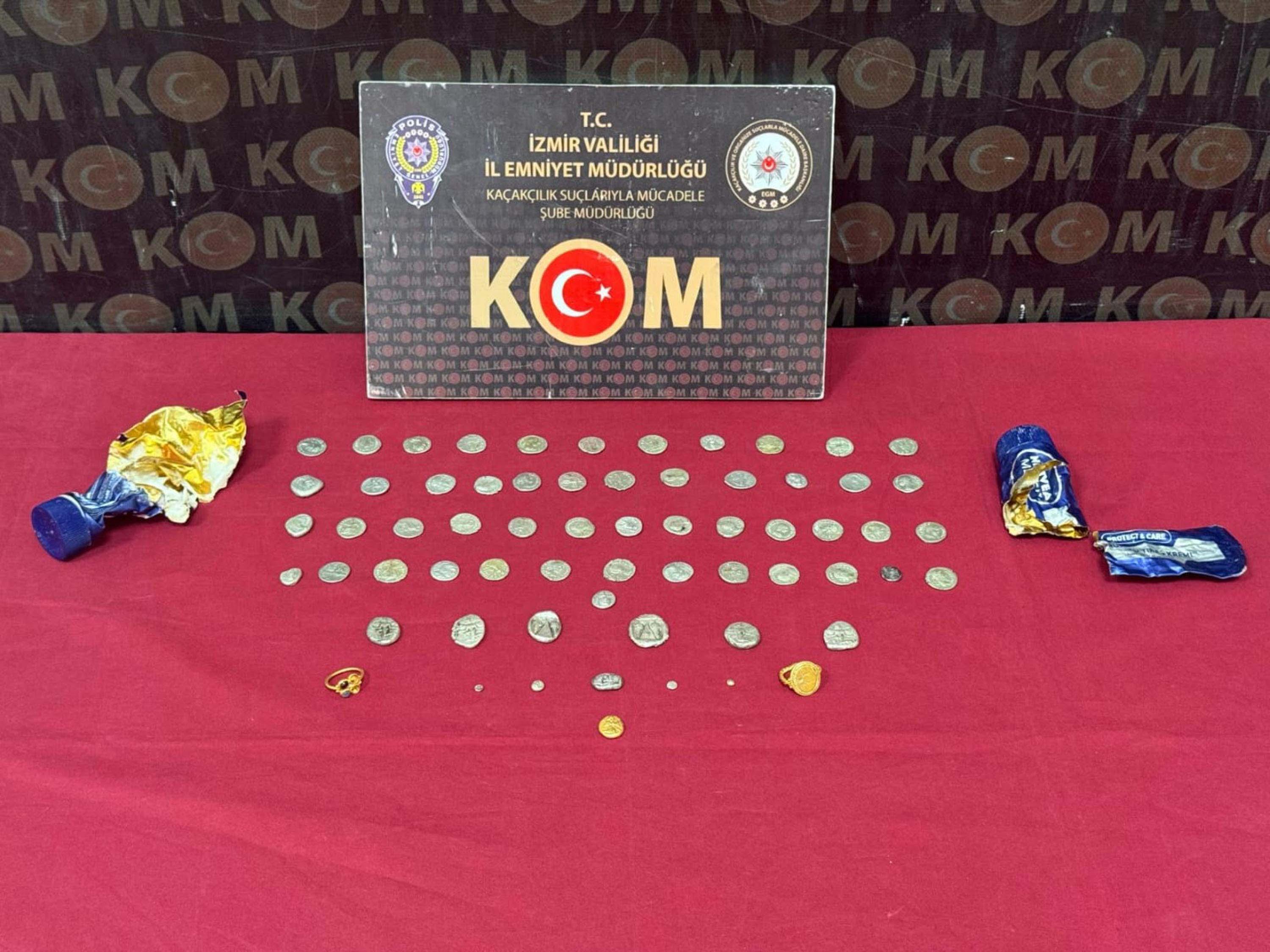 İzmir Cumhuriyet Başsavcılığı koordinesindeki İl Emniyet Müdürlüğü Kaçakçılık Suçlarıyla Mücadele Şube Müdürlüğü ekipleri, tarihi eser kaçakçılarına yönelik 28, 29 Nisan ile 1 Mayıs tarihlerinde operasyon gerçekleştirdi. Gaziemir ve Bayraklı ilçelerinde önceden belirlenen ev ve iş yerleri arandı. Soruşturmayı derinleştiren polis, Adnan Menderes Havalimanı Dış Hatlar Terminali'nde 1 şüphelinin valizini kontrol etti. Havalimanı Şube Müdürlüğü personeli ve Gümrük Muhafaza görevlileri de çalışmaya destek verdi. Havalimanındaki kontrolde, valizdeki diş macunu tüpleri içerisine gizlenmiş, yurt dışındaki müzayede evlerinde tahmini 20 milyon TL değer biçilen, Arkaik, Lidya, Roma, Bizans ve Osmanlı dönemlerine ait olduğu değerlendirilen 130 sikke, 32 obje ve 2 altın yüzük ele geçirildi. Toplam 5 şüpheli gözaltına alındı. Polisteki işlemlerinin ardından adliyeye sevk edilen şüphelilerden 1'i tutuklanırken; 1'i adli kontrol şartıyla olmak üzere 4'ü ise serbest bırakıldı. (DHA)