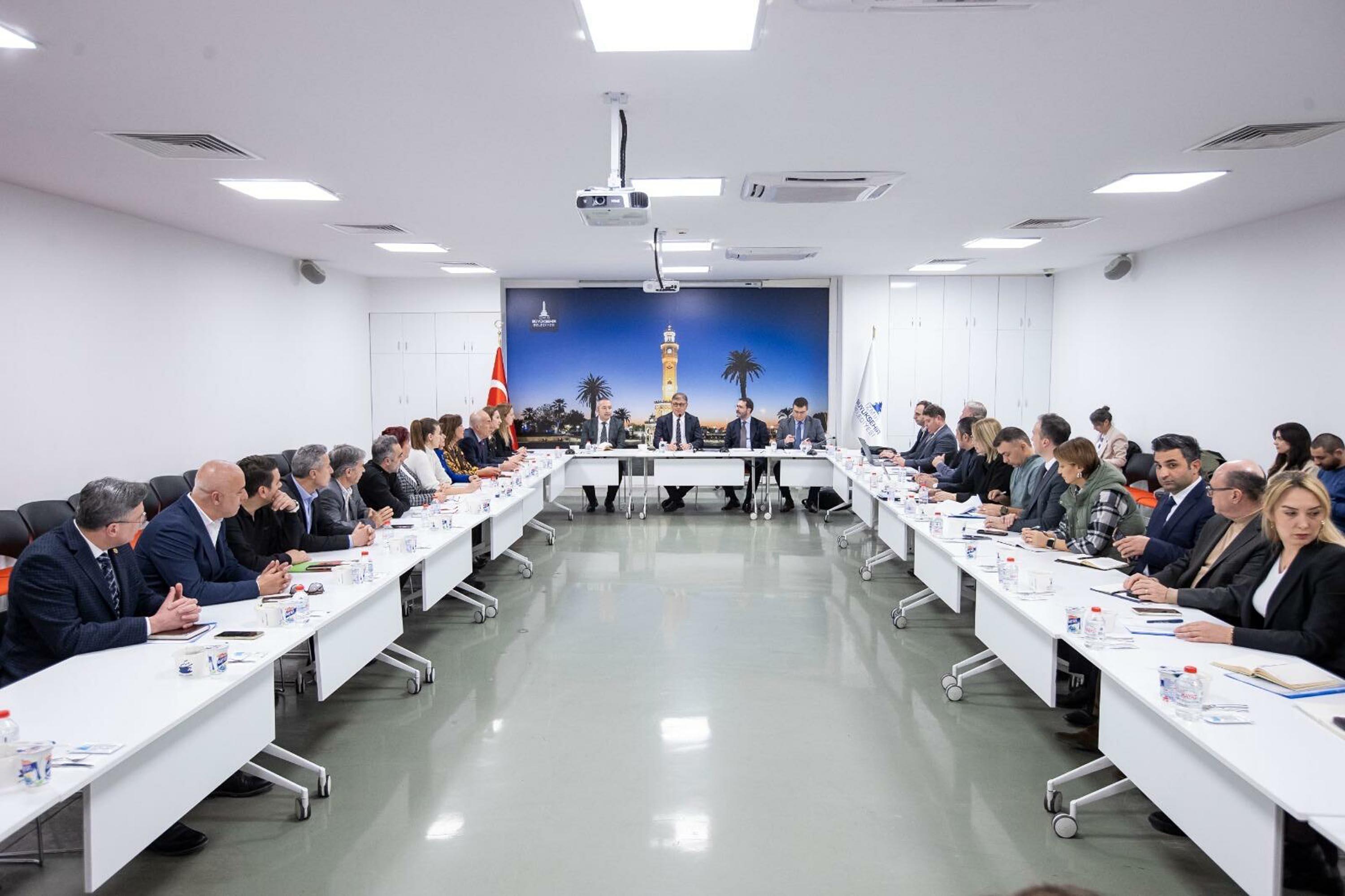 İZMİR, (DHA)-İZMİR Büyükşehir Belediye Başkanı Cemil Tugay, Karşıyaka ilçesindeki muhtarlarla bir araya geldiği toplantıda, dirençli kent çalışmalarından, ulaşım ve atık yönetimine kadar hayata geçirecekleri projeleri açıkladı. Yurttaşlara sağlıklı ve uygun fiyatta ürün sağlayacak eski Tansaş modelini hayata geçirmek için çalışmaların sürdüğünü aktaran Başkan Tugay, yeni nesil troleybüslerin de ilk olarak Karşıyaka'da sefere başlayacağını duyurdu.