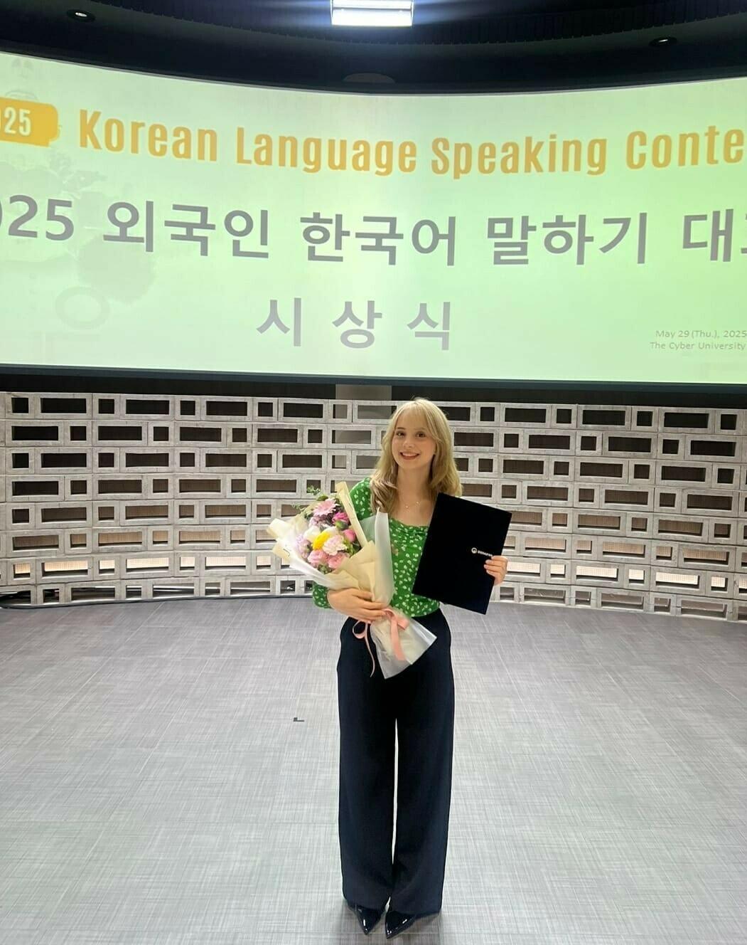 İZMİR, (DHA)-İZMİR Ekonomi Üniversitesi (İEÜ) İngilizce Mütercim ve Tercümanlık Bölümü'nden mezun olduktan sonra yüksek lisans için gittiği Güney Kore'de 'Dilbilim' alanında eğitimini burslu olarak sürdüren Aybüke Cihan (25), The Korea Times gazetesinin düzenlediği Korece Konuşma Yarışması'nda birinci oldu. Türk ve Güney Kore arasındaki kültürel yakınlıkları konu alan bir konuşma yapan ve bunun video kaydını alarak yarışmaya gönderen Cihan, Kore diline olan hakimiyeti ve etkili ifade gücüyle bu başarıyı elde etti.
