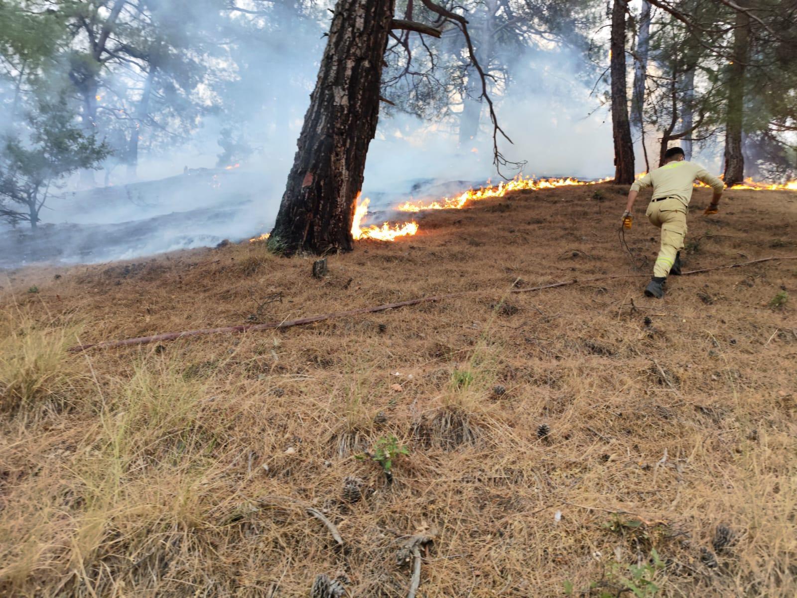 Yangın çıkan bölgenin dağlık bir arazi yapısına sahip olması ve kuvvetli rüzgar, ekiplerin alevlerle mücadelesini güçleştiriyor.