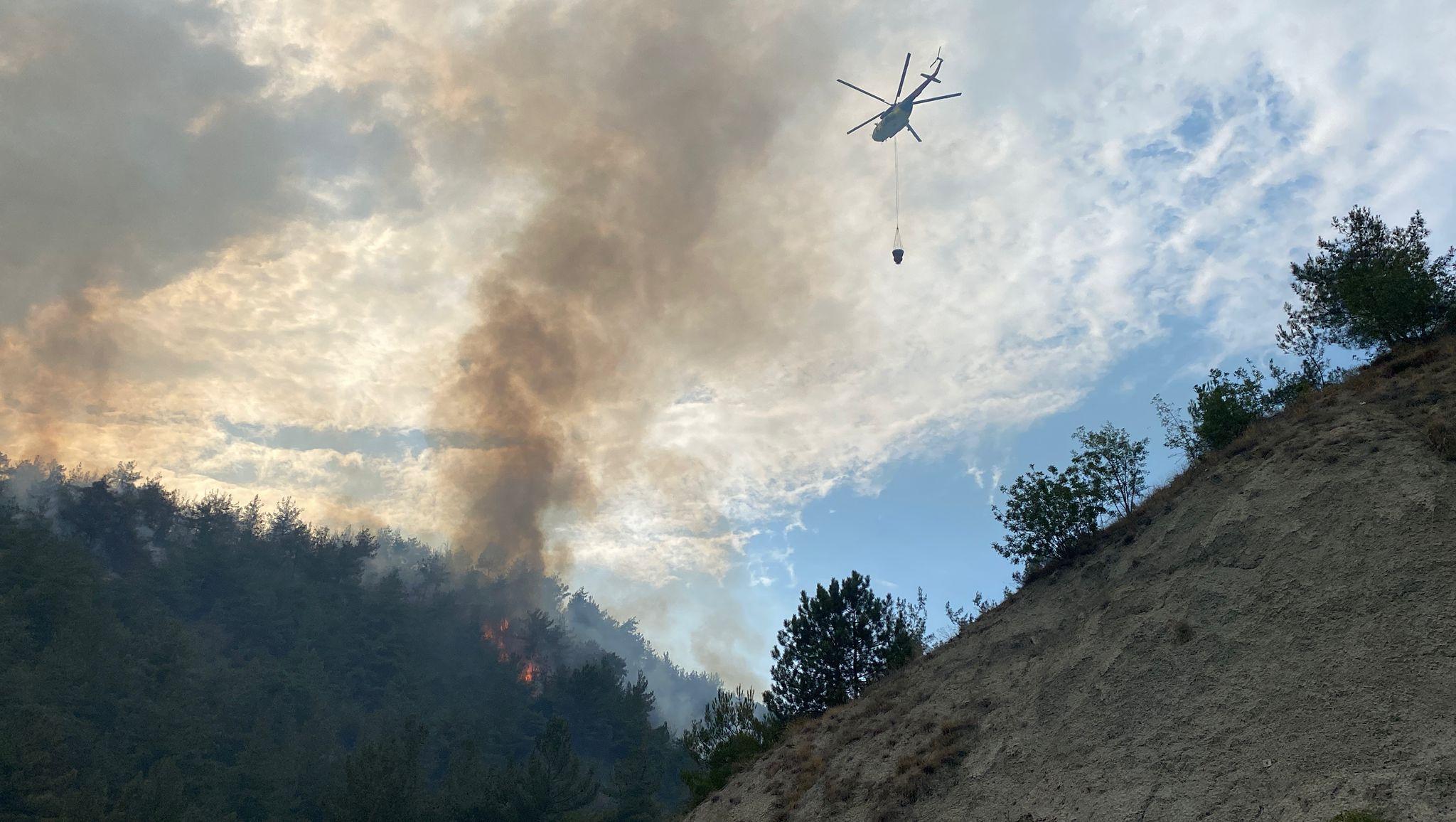 Murat ÖZELCİ/KARABÜK, (DHA)- KARABÜK’te orman yangını çıktı. Bölgeye sevk edilen ekipler, alevlere havadan ve karadan müdahaleye ediyor.