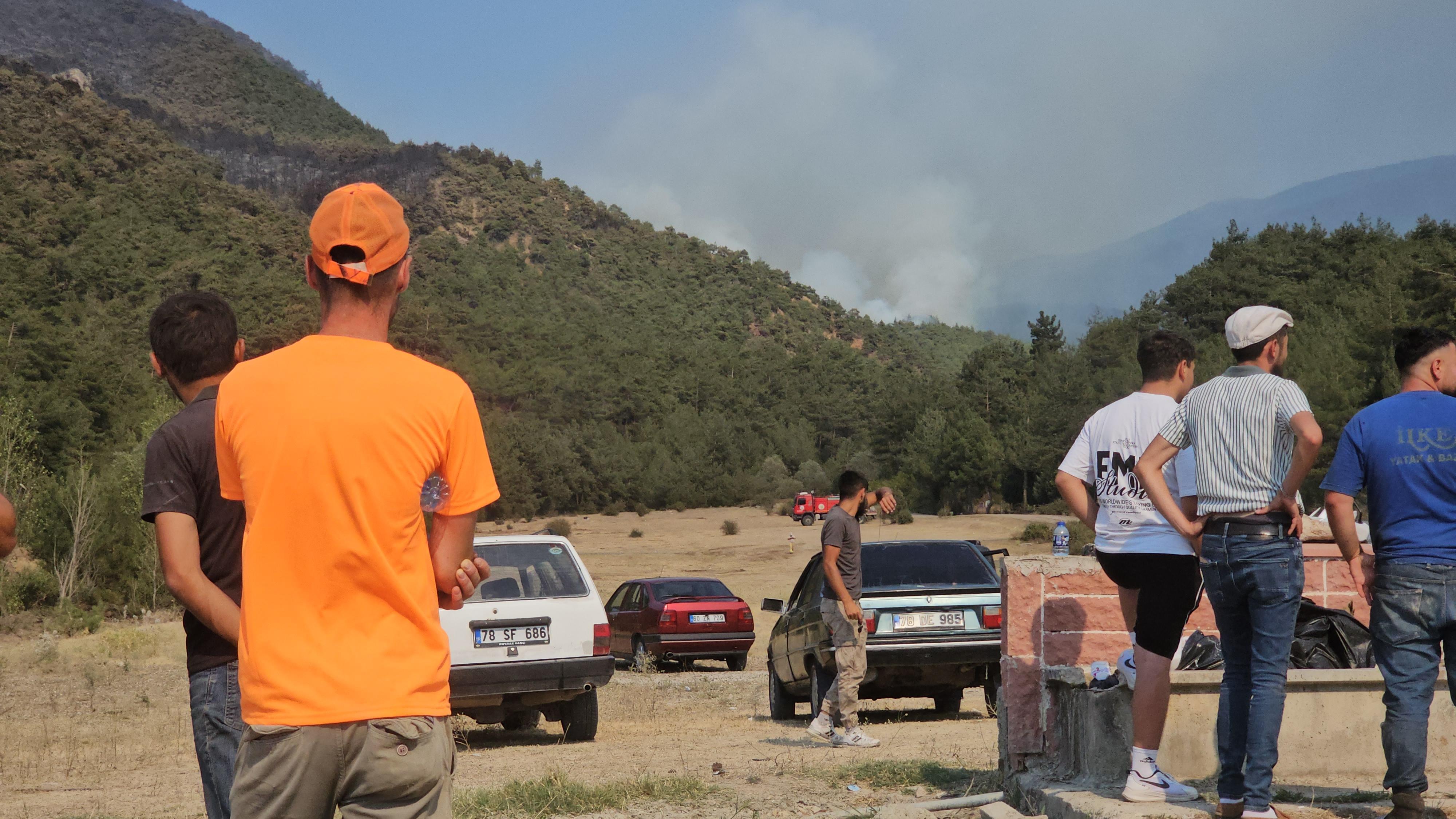 Karabük’te orman yangınlarıyla mücadele 5 gündür sürerken, bazı vatandaşlar boşaltılan köylerin civarındaki yangınları güvenli bir noktada araçlarını park ederek izledi. Birçok noktada ekipler ve gelenler için ikram araçları da konuşlandırıldı.