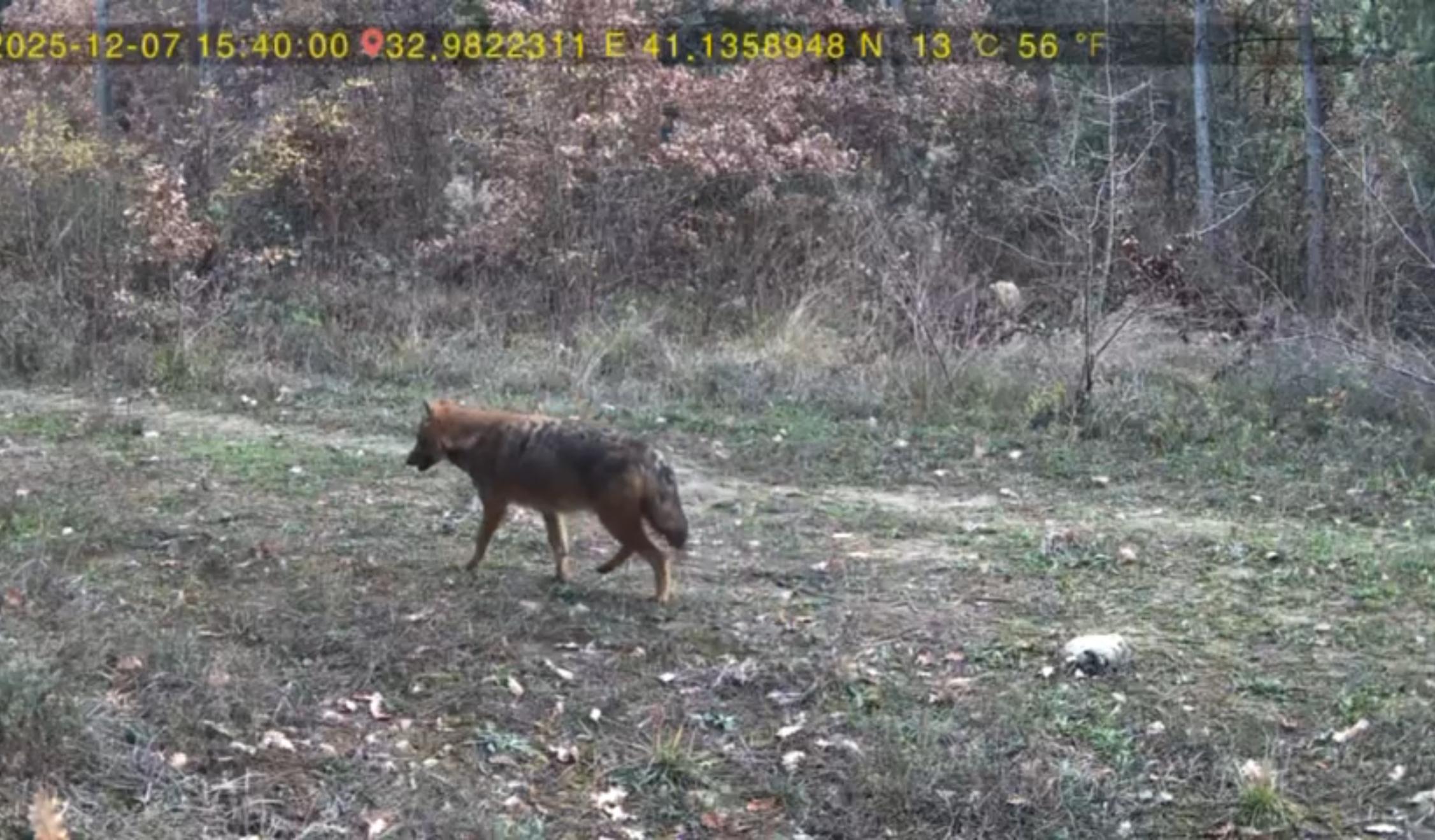 Ormanda dolaşan vaşak ile kurt fotokapana yansıdı