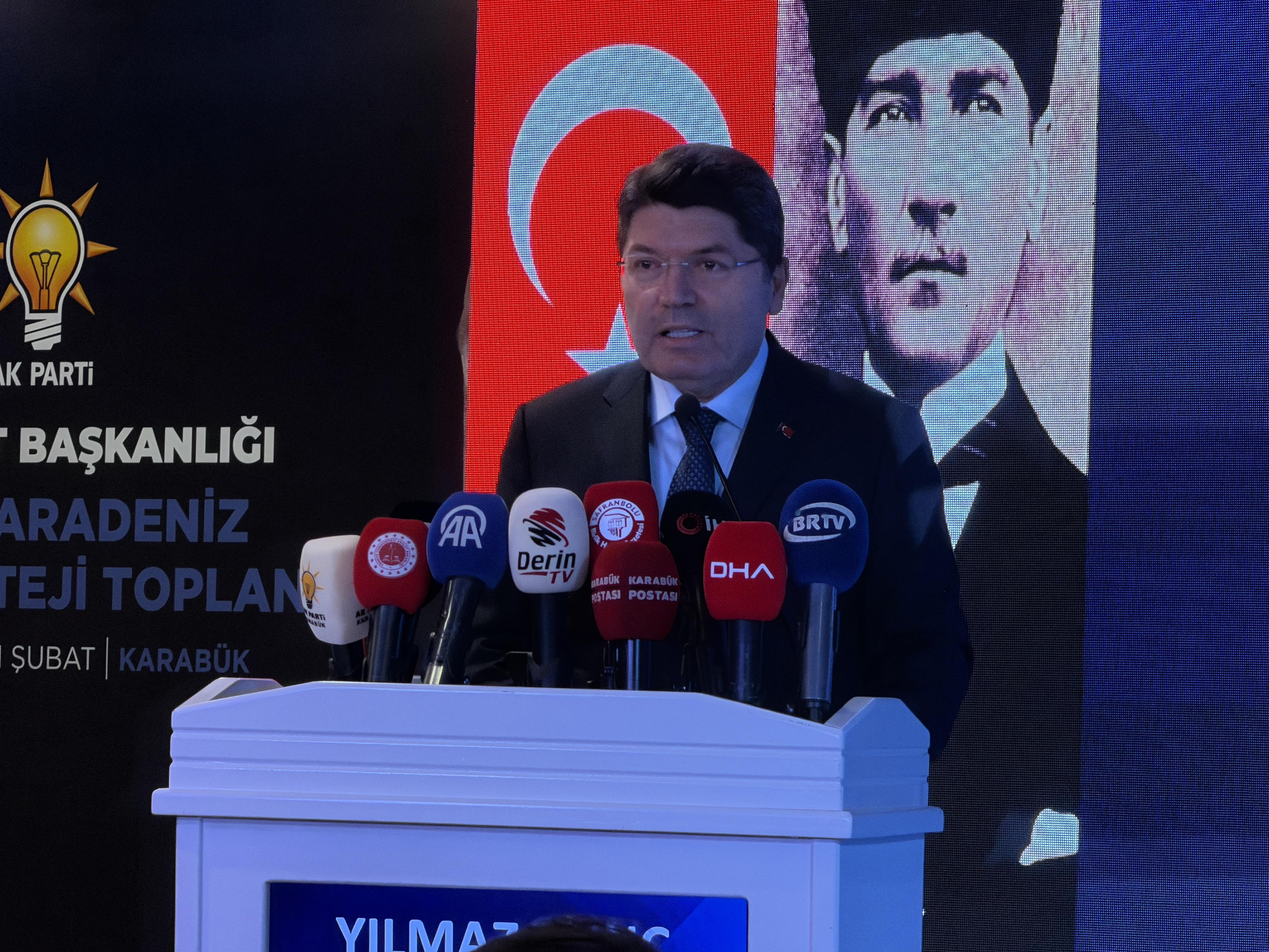 Adalet Bakanı Yılmaz Tunç, Bartın’daki programının ardından Karabük’ün Safranbolu ilçesine geçerek AK Parti Teşkilat Başkanlığı tarafından düzenlenen Batı Karadeniz Bölge Strateji Toplantısı'na katıldı. Toplantıda partililere seslenen Bakan Tunç, ana muhalefetin yargıdan rahatsız olduğunu belirterek, “İşte bugünkü yargı sistemi birilerinin arka bahçesi olmaktan çıktığı için vesayetçinin, darbecinin etkisinde değil de tamamen millet iradesini, demokratik hukuk devleti ilkesini esas aldığı için darbeciden de, vesayetçiden de, yolsuzluk yapandan da, hırsızlık yapandan da hesap sorduğu için bugün ana muhalefet bu yargıdan rahatsız. Onun için 'Türkiye'de adalet yok' diyorlar. Onun için yargı mensuplarımızı tehdit ediyorlar. Çünkü rüşvetin, hırsızlığın hesabını vermeleri gerekirken, gelip yargı mensuplarına hakaret ederek bir algı çalışması içerisinde oluyorlar. Milletimiz neyin ne olduğunu görüyor. Herkes yanlışının hesabını millet huzurunda vermesi lazım. Tüyü bitmemiş yetimin hakkını korumak bizim iktidarımızın ve en başta yargımızın görevi. Yargı işini yapacak, tarafsız ve bağımsız bir şekilde çalışmalarını sürdürecek” dedi.