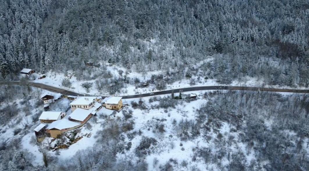 Kentin yüksek kesimlerinde gece saatlerinde kar etkili oldu. Yağışın ardından Karabük-Bartın kara yolunun 1030 rakımlı Ahmet Usta mevkisinde sürücüler, araçlarıyla yavaş ilerlemek zorunda kaldı. Yağışın ardından ormanlar da karla kaplandı. Beyaza bürünen çam ormanlarının manzarası, dronla görüntülendi. (DHA)