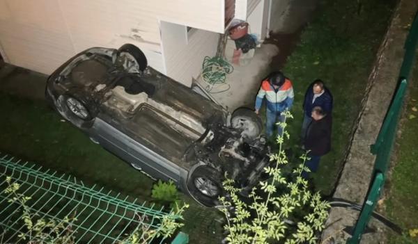 Otomobil, site bahçesinde düştü; anne ile 2 çocuğu yaralı