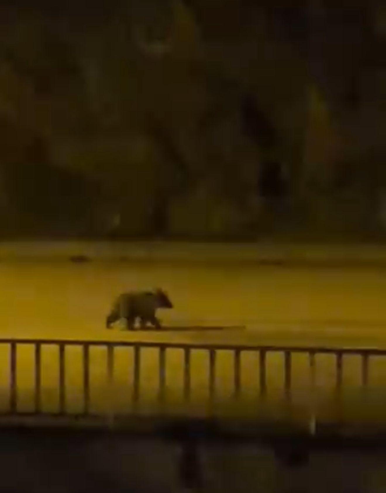 Murat ÖZELCİ/YENİCE(Karabük),(DHA)-KARABÜK'ün Yenice ilçesinde caddede koşan yavru bozayı, cep telefonuyla görüntülendi.