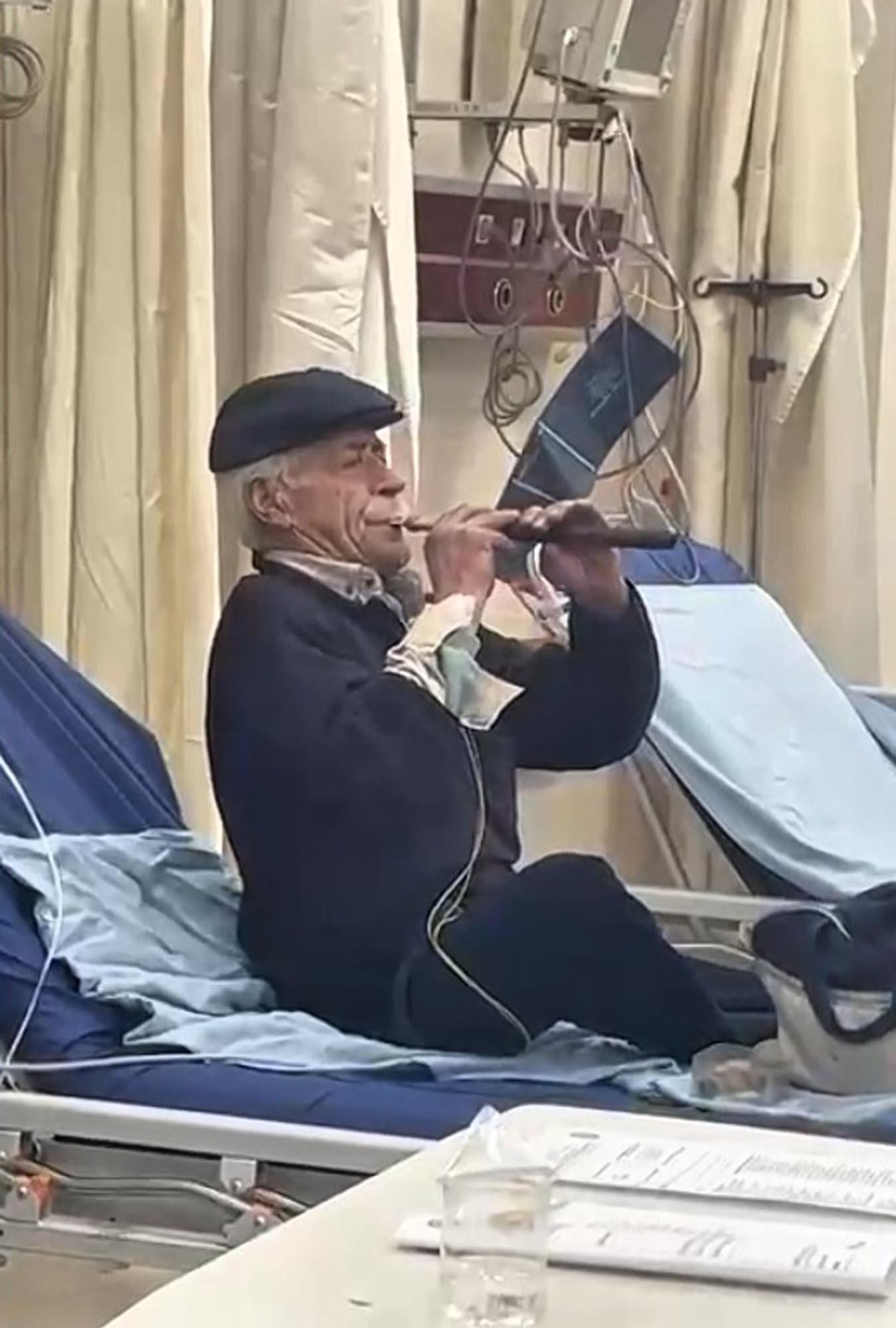 Bedir ALTUNOK/KARS, (DHA)- KARS’ta zurnacı Nazım Koç (86), rahatsızlığı nedeniyle kaldırıldığı acil serviste zurna çaldı. “Acımı hafifletiyor” diyen Koç’un zurna çaldığı görüntüler, sosyal medyada paylaşıldı.