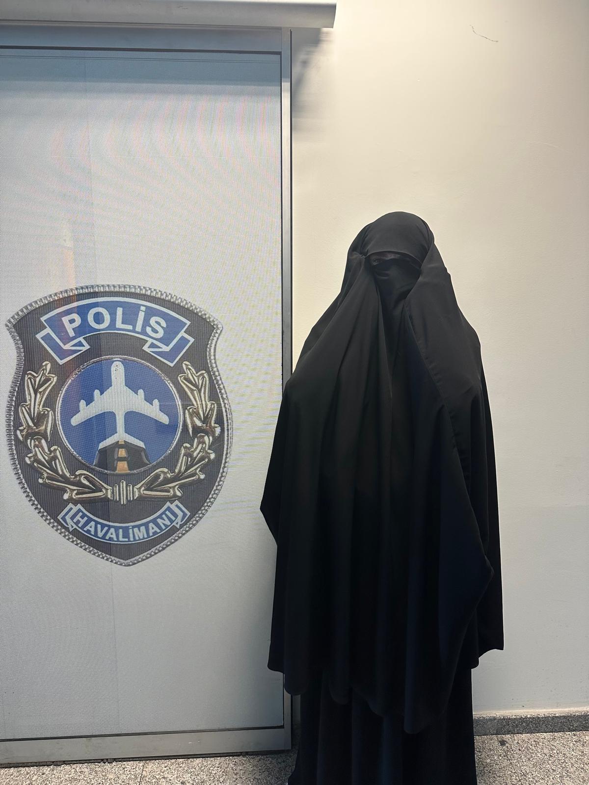 Bedir ALTUNOK-Volkan KARABAĞ/KARS, (DHA)- KARS’ta 6 farklı suçtan 3 yıl 6 ay 22 gün kesinleşmiş hapis cezasıyla aranan S.K. (23) adlı erkek, kara çarşaf giyip İstanbul'a gitmek isterken havalimanında polisler tarafından yakalandı.