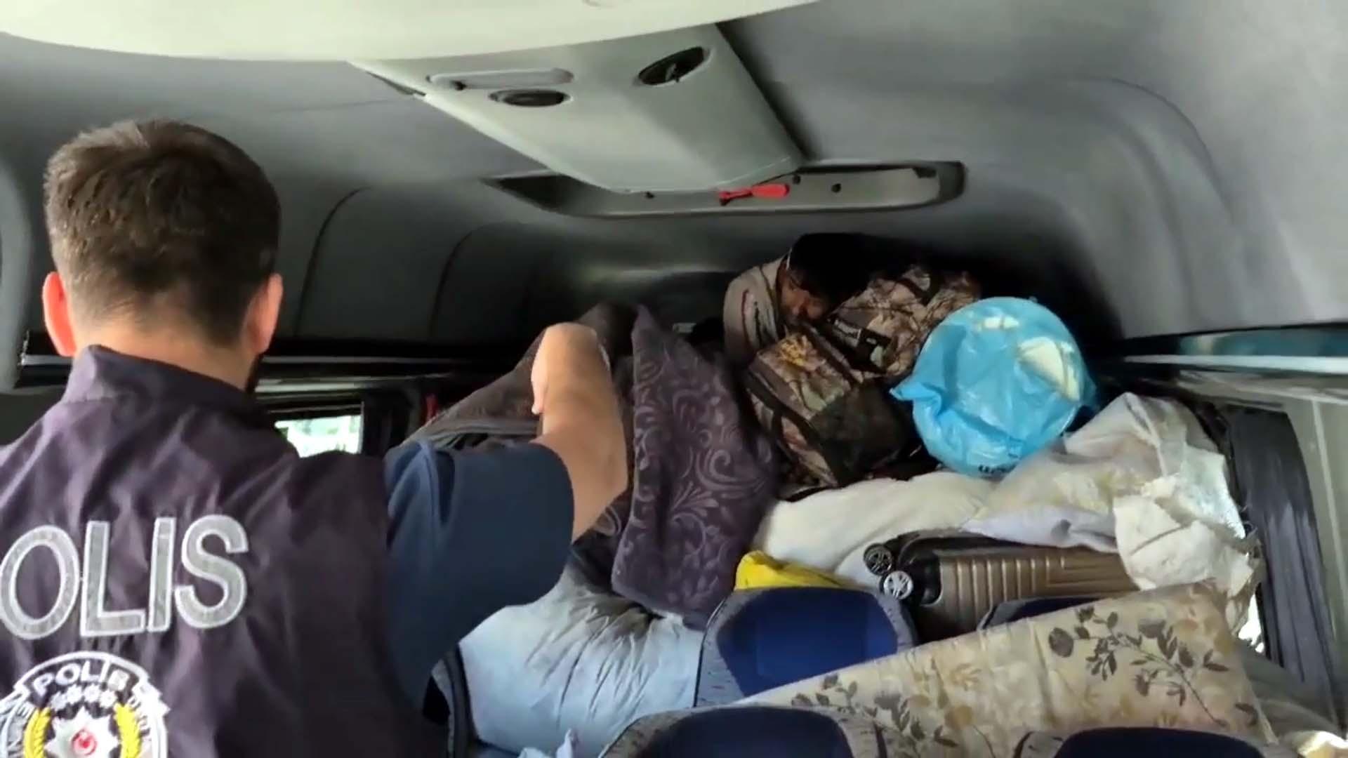 Bünyamin KARACAN/TOSYA (Kastamonu), (DHA)- KASTAMONU'nun Tosya ilçesinde düzensiz göçle mücadele kapsamında durdurulan bir minibüste eşyaların arasında saklanan 8 düzensiz göçmen yakalandı.