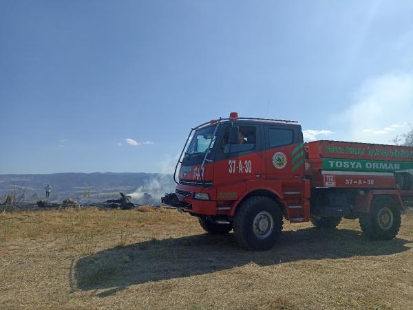 Bünyamin KARACAN/TOSYA (Kastamonu), (DHA)- KASTAMONU'nun Tosya ilçesinde anız yangınında 100 dönüm tarım arazisi zarar gördü, alevler evlere sıçramadan söndürüldü.