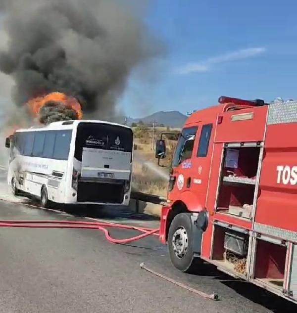 Bünyamin KARACAN/TOSYA (Kastamonu), (DHA)- KASTAMONU'nun Tosya ilçesinde, İstanbul Büyükşehir Belediyesi'ne (İBB) ait servis midibüsünde çıkan yangın, itfaiye tarafından söndürüldü.
